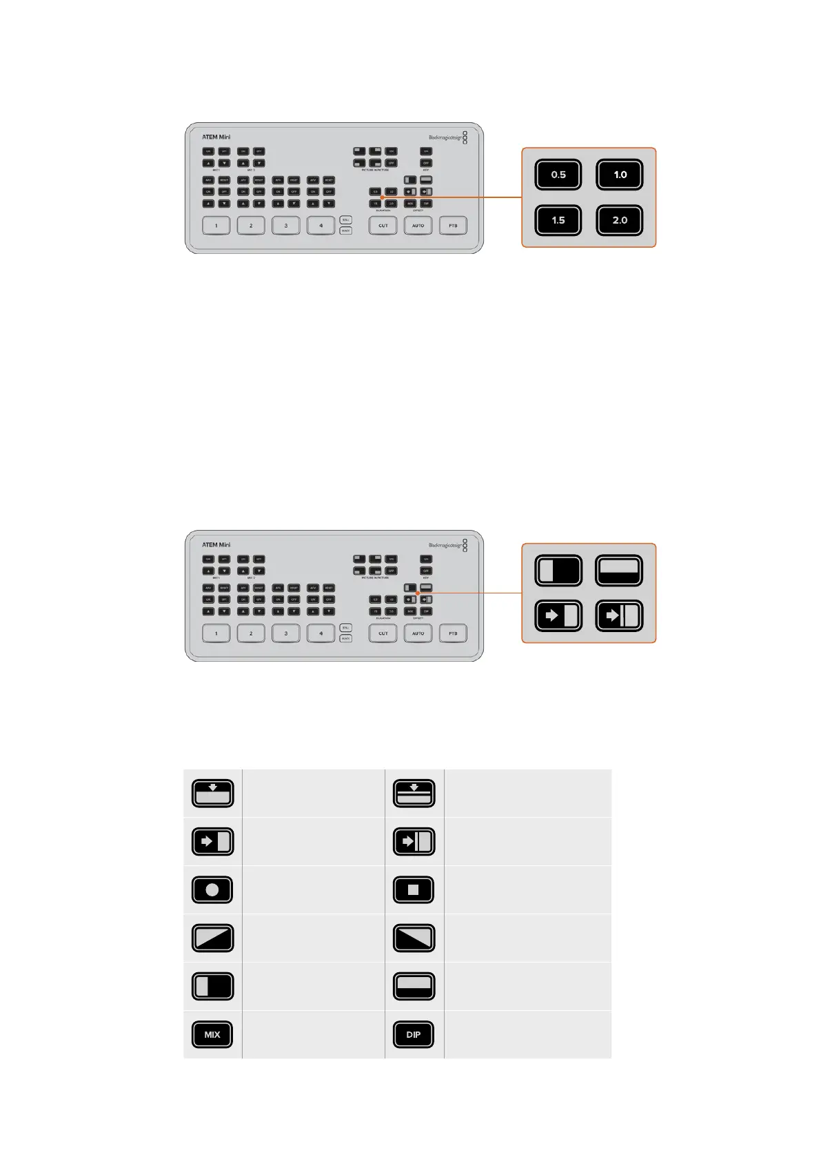 Die ATEM Mini Extreme Modelle bieten mehr Übergangsarten als andere ATEM Mini Modelle.