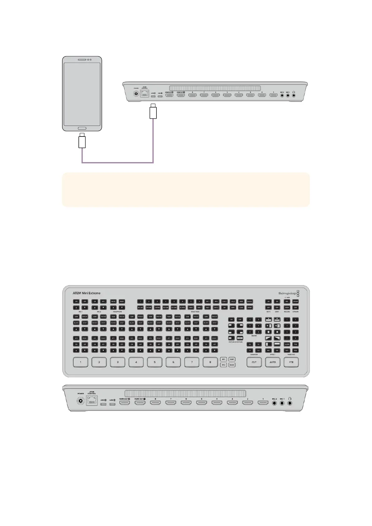 An den ATEM Mini Extreme lassen sich zwei USB-C-Geräte gleichzeitig anschließen. Sie können