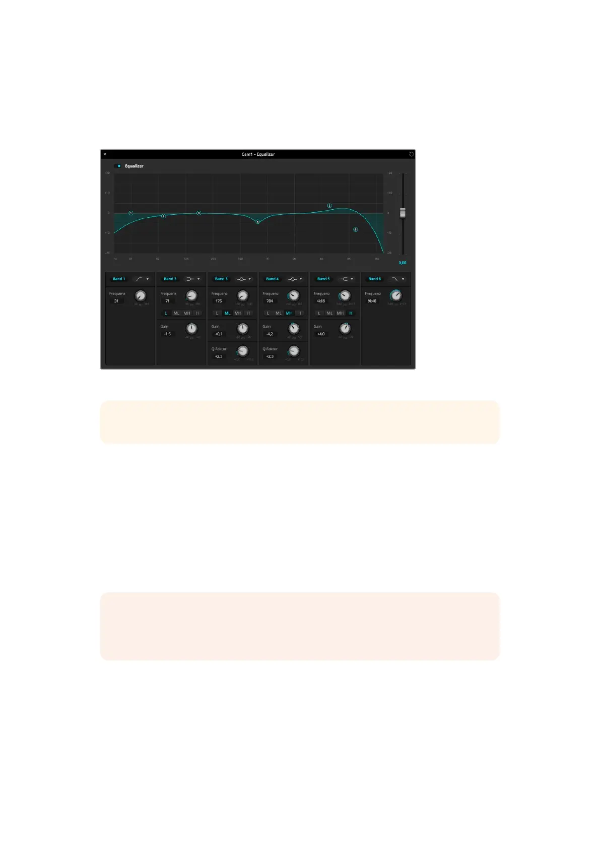 Jedes Band des parametrischen 6-Band-Equalizers hat eine Spalte mit Einstellungen. Diese