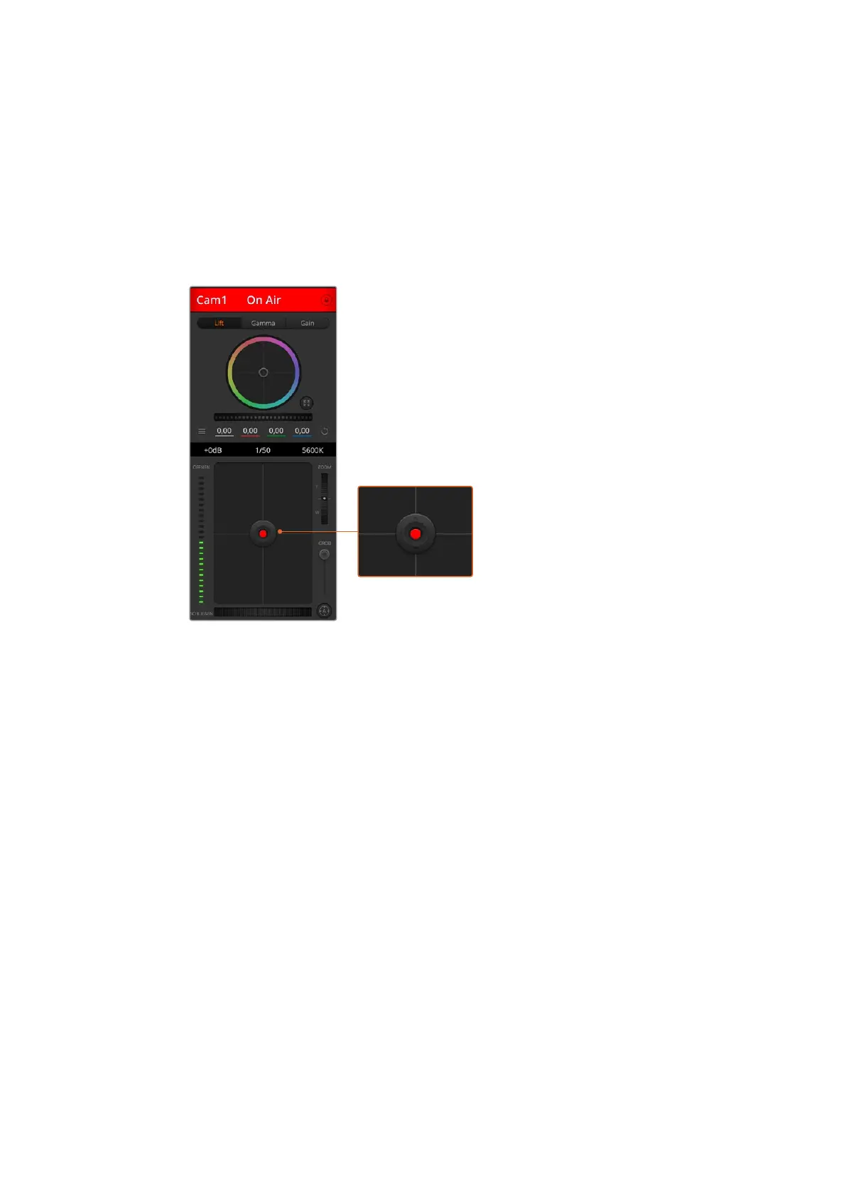 Blende und Schwarzabhebung werden über den kreisförmigen Button im Fadenkreuz der einzelnen