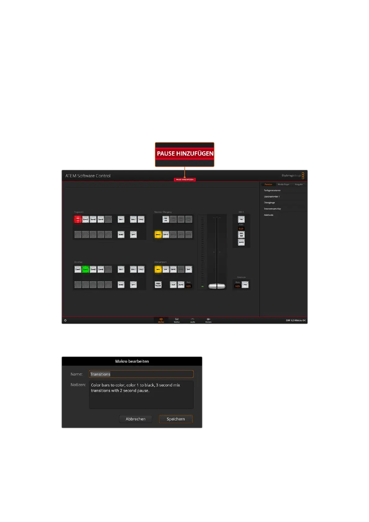 ATEM Software Control zeigt den laufenden Aufzeichnungsvorgang eines Makros anhand