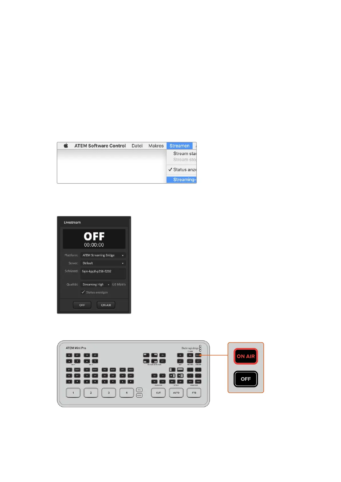 Livestream-Palette aufzurufen und „ON AIR“ zu aktivieren.