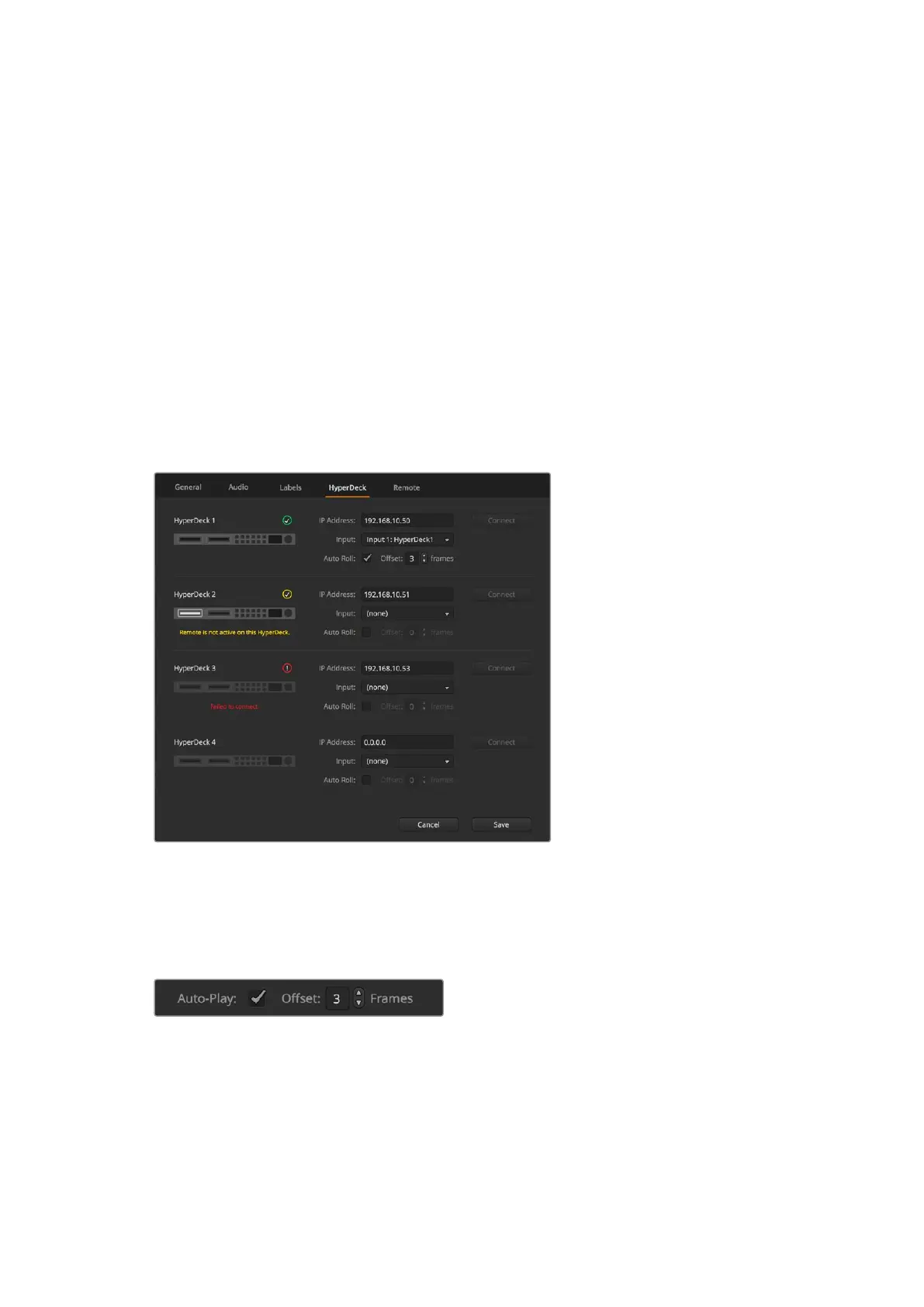 Sie können einem HyperDeck mit „Auto-Play“ vorgeben, Video automatisch wiederzugeben, sobald