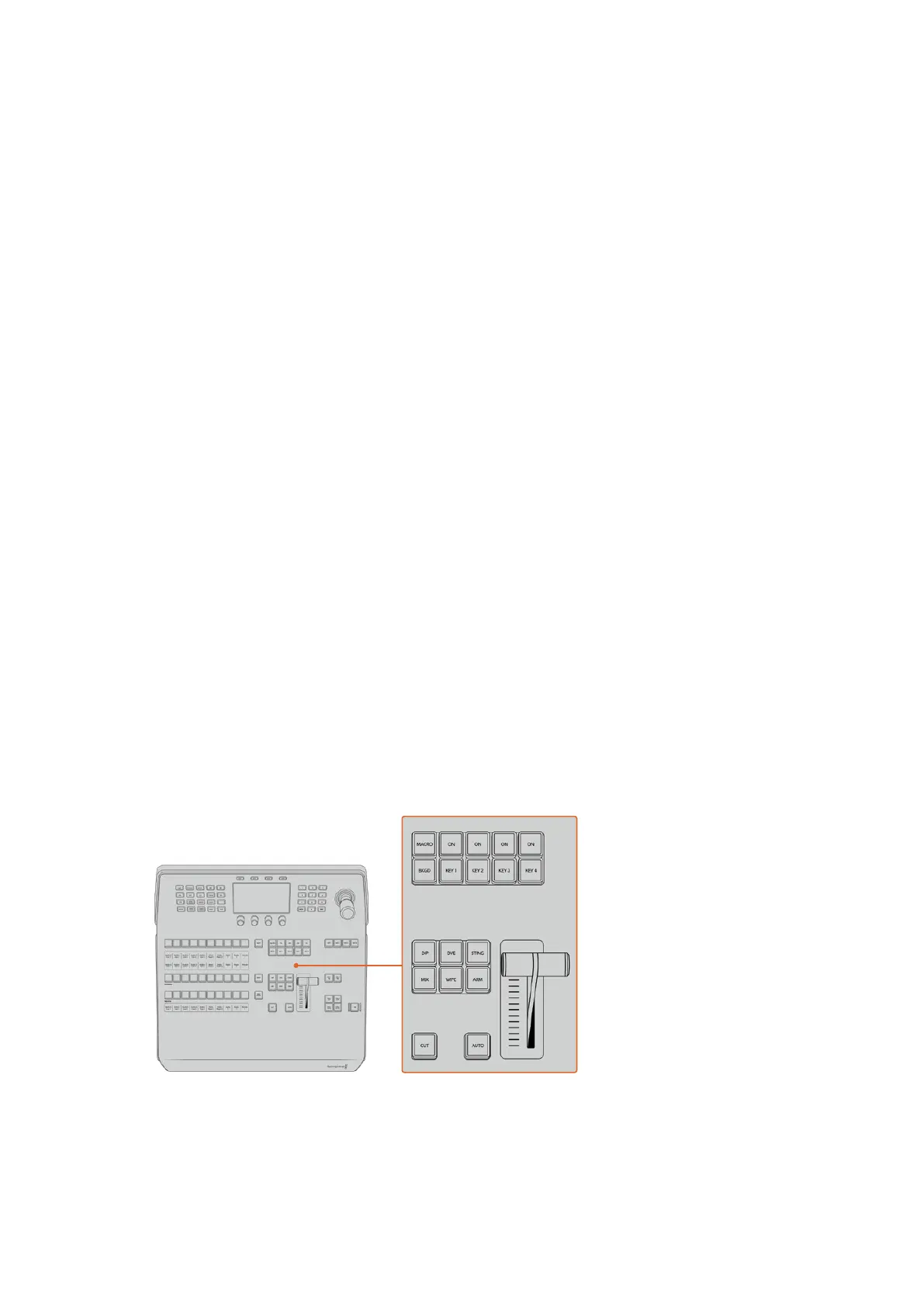 von Quellen an Auxiliary-Ausgänge und Keyer. Ist die MACRO-Taste aktiviert, dient diese Tastenzeile