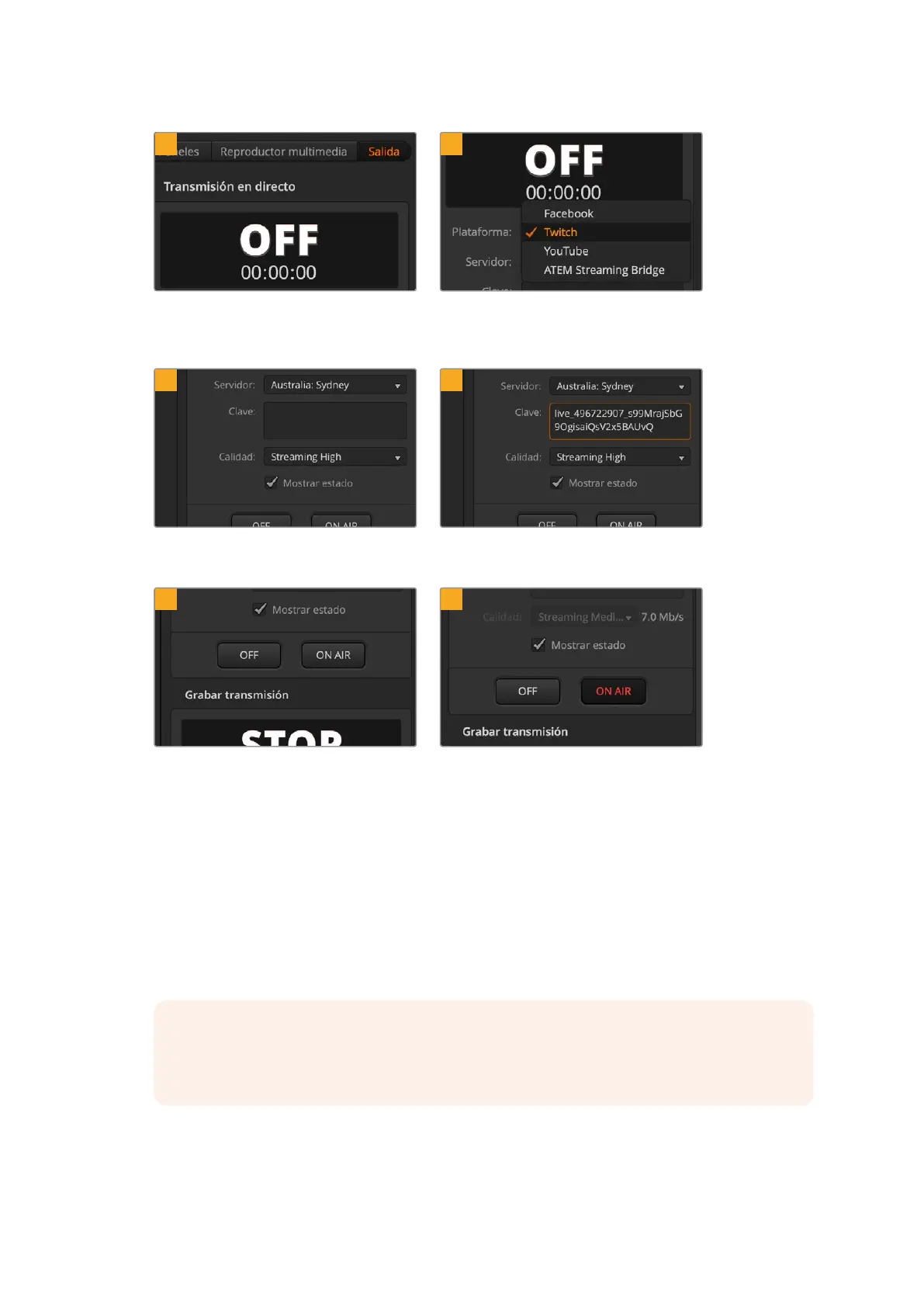 para transmisiones en directo.