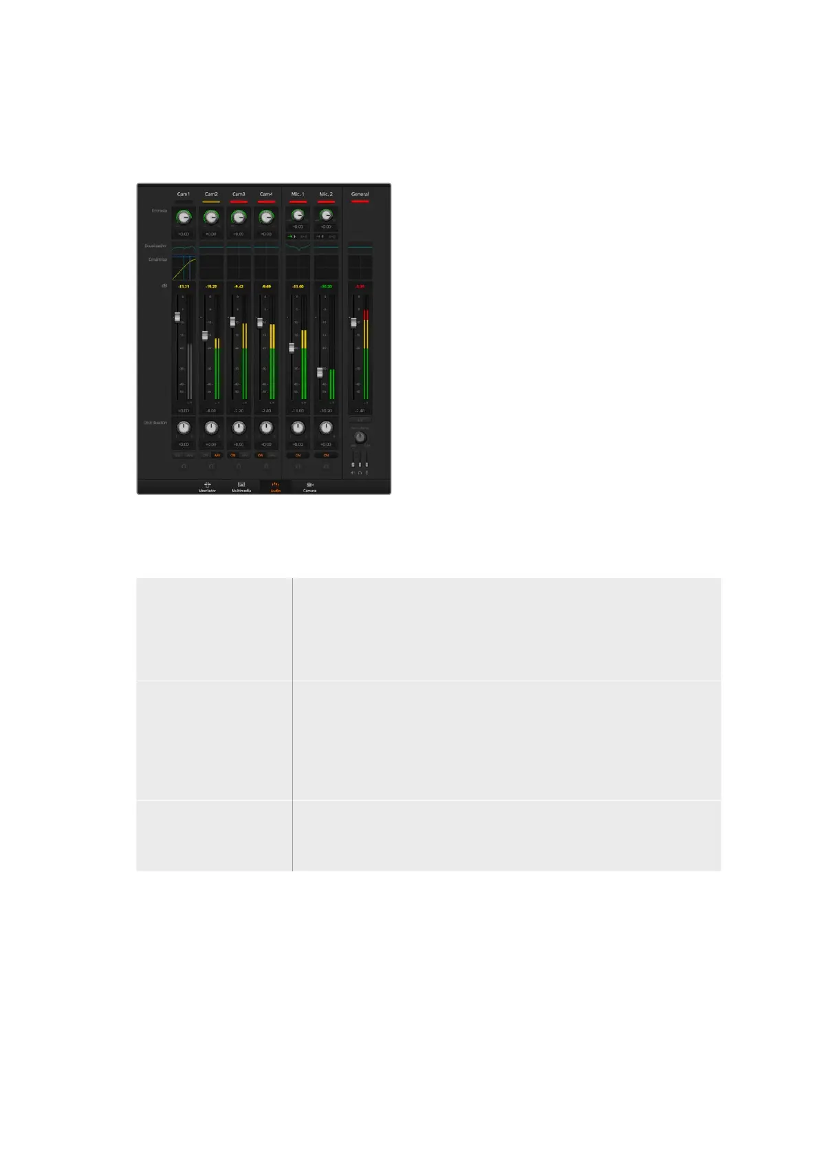 cada entrada y está disponible en los modelos ATEM Production Studio y