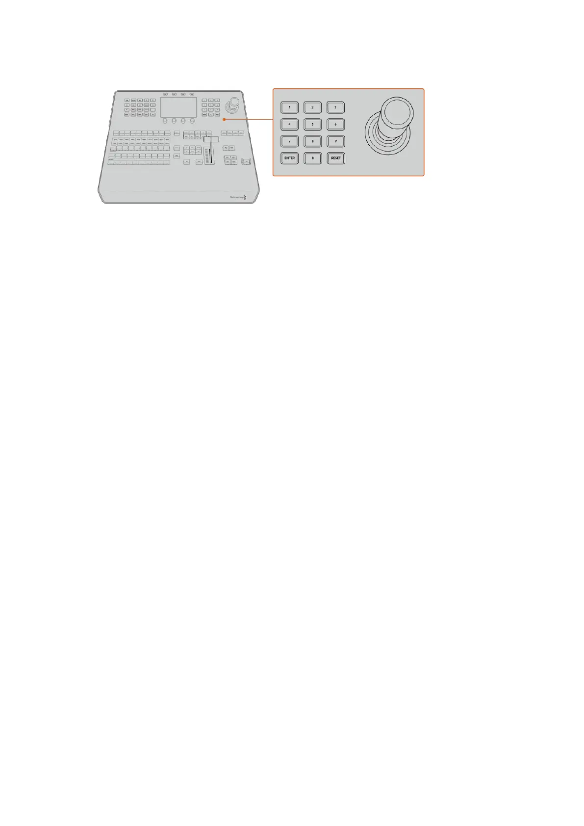 El dispositivo ATEM 1 M/E Advanced Panel incluye la misma distribución de los botones y mandos giratorios