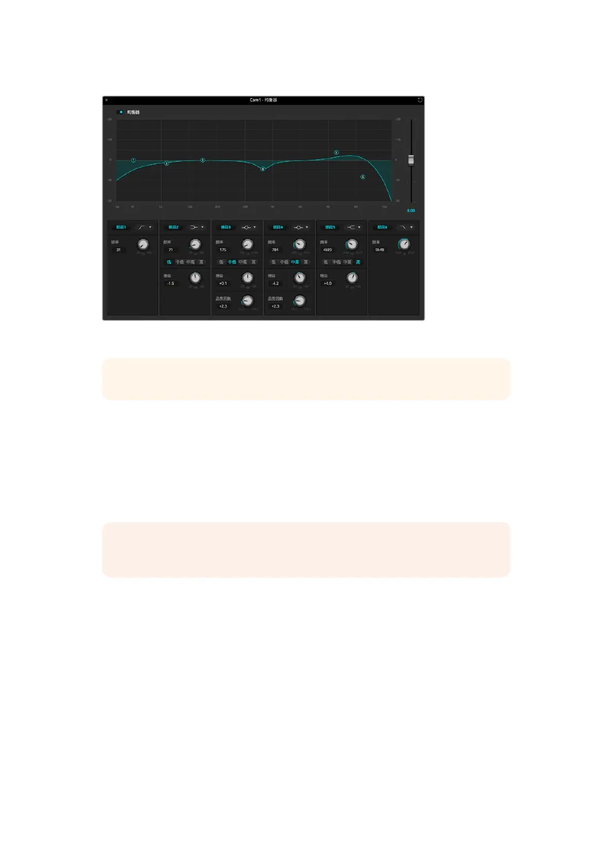 每个频段的曲线图上都分布了多个控制柄。您可以分别点击拖动每个控制柄来选择想要调整的该频段的