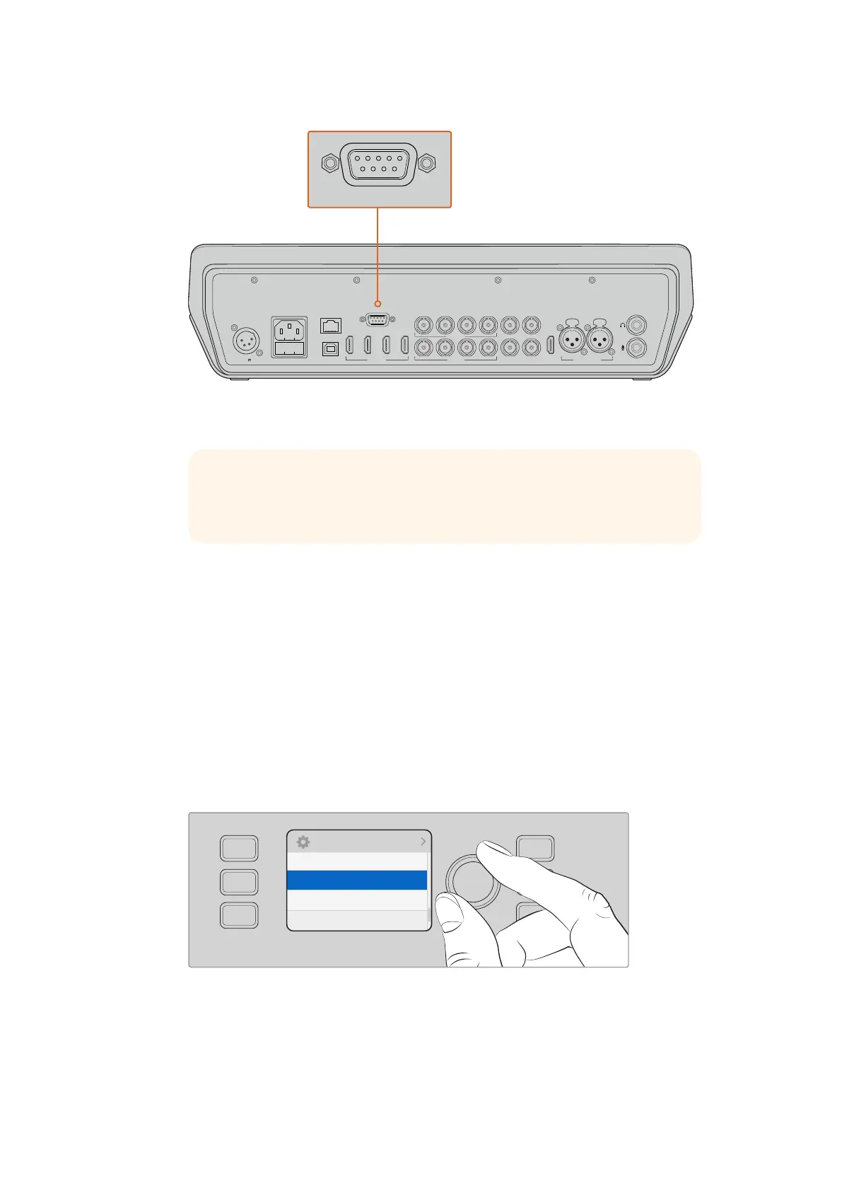 5 Press the set button to select the setting, use the rotary knob to select “VISCA”