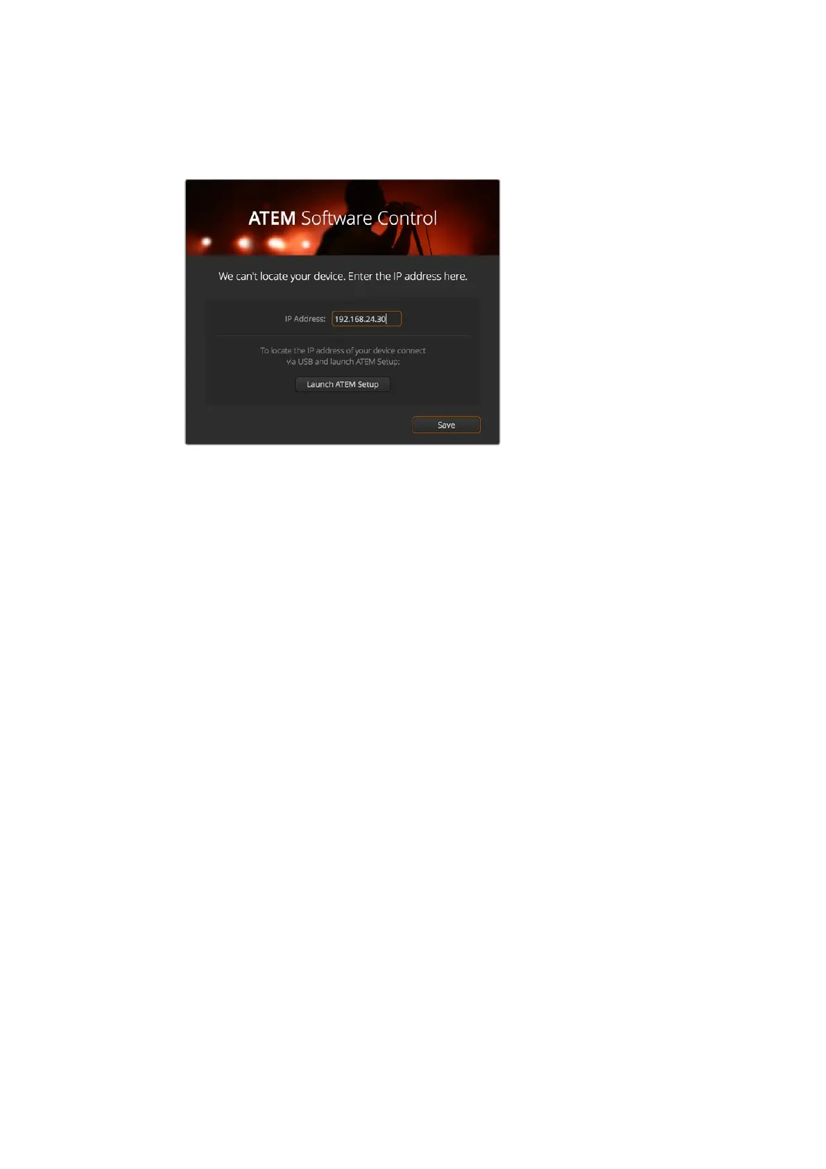 If the setup dialog box remains visible, you will need to enter your switcher’s IP address.