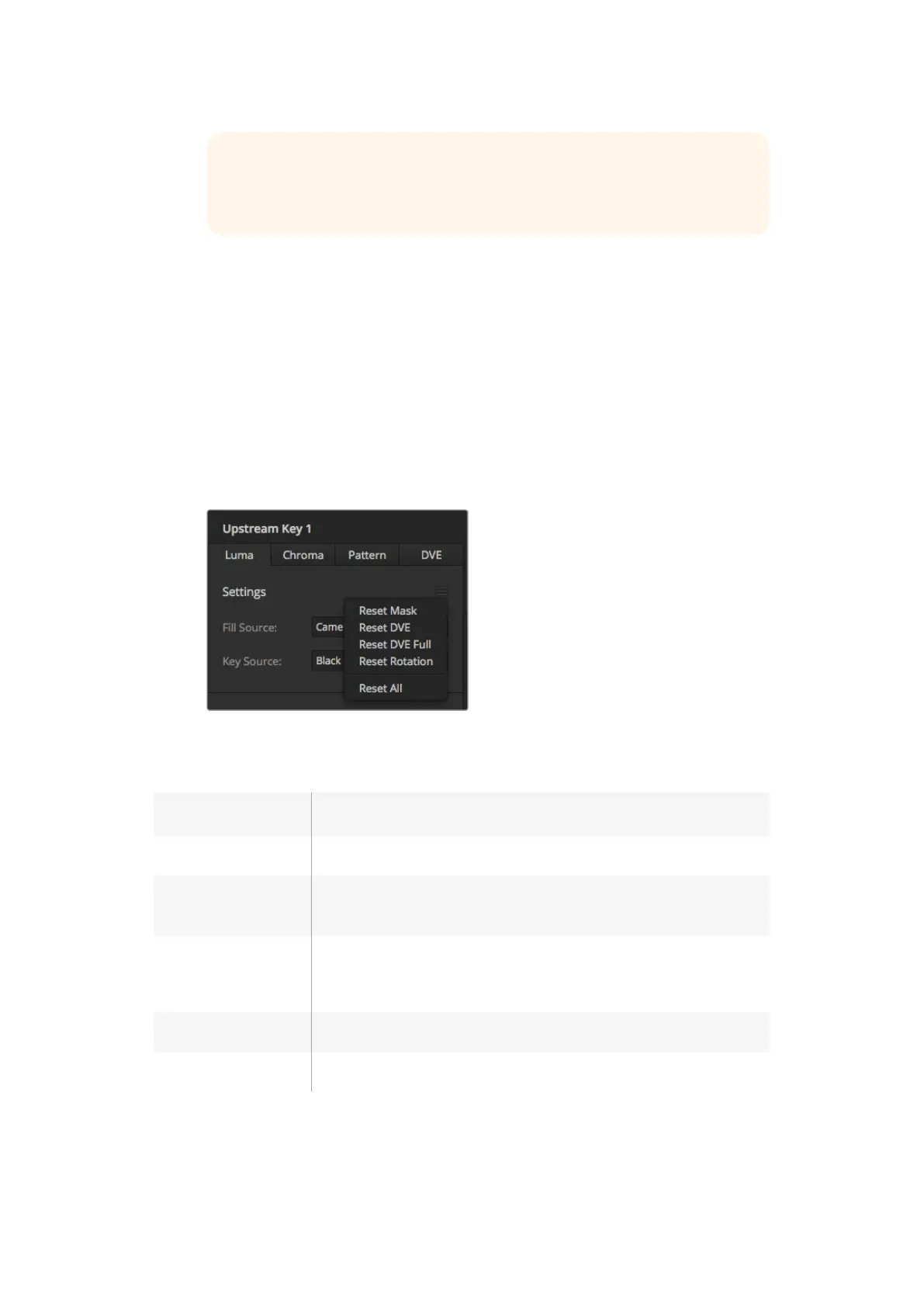 1 Expand the upstream key 1 M/E 1 palette and select luma tab.