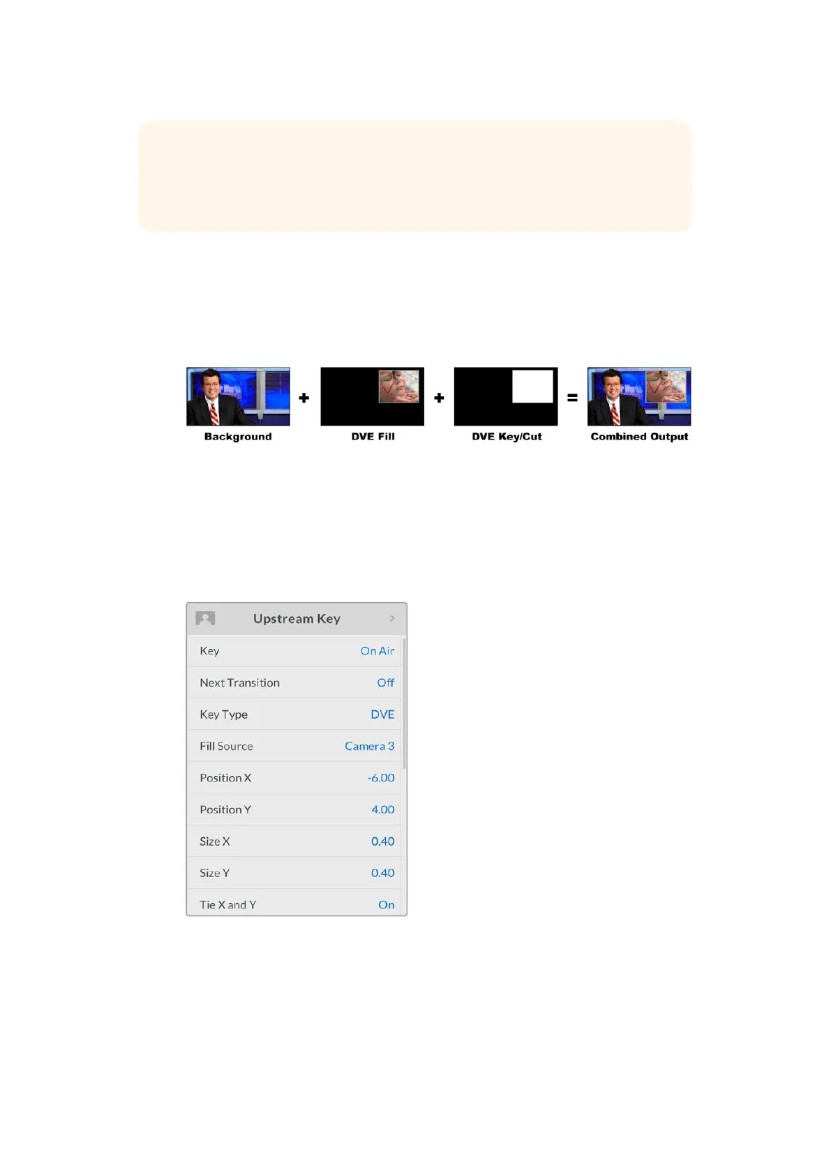 Key/Cut – In the case of a DVE key, the key/cut signal is generated by the switcher’s