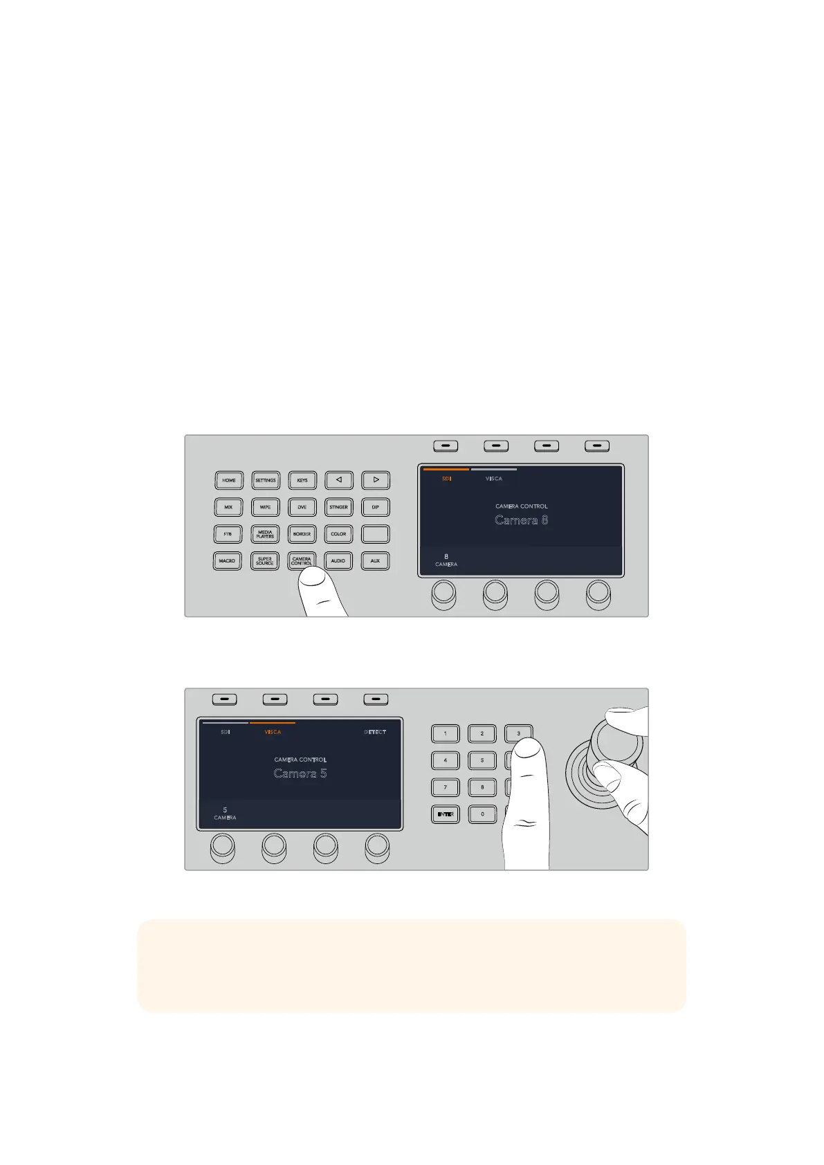 To use VISCA PTZ control, press the 'camera control' button and