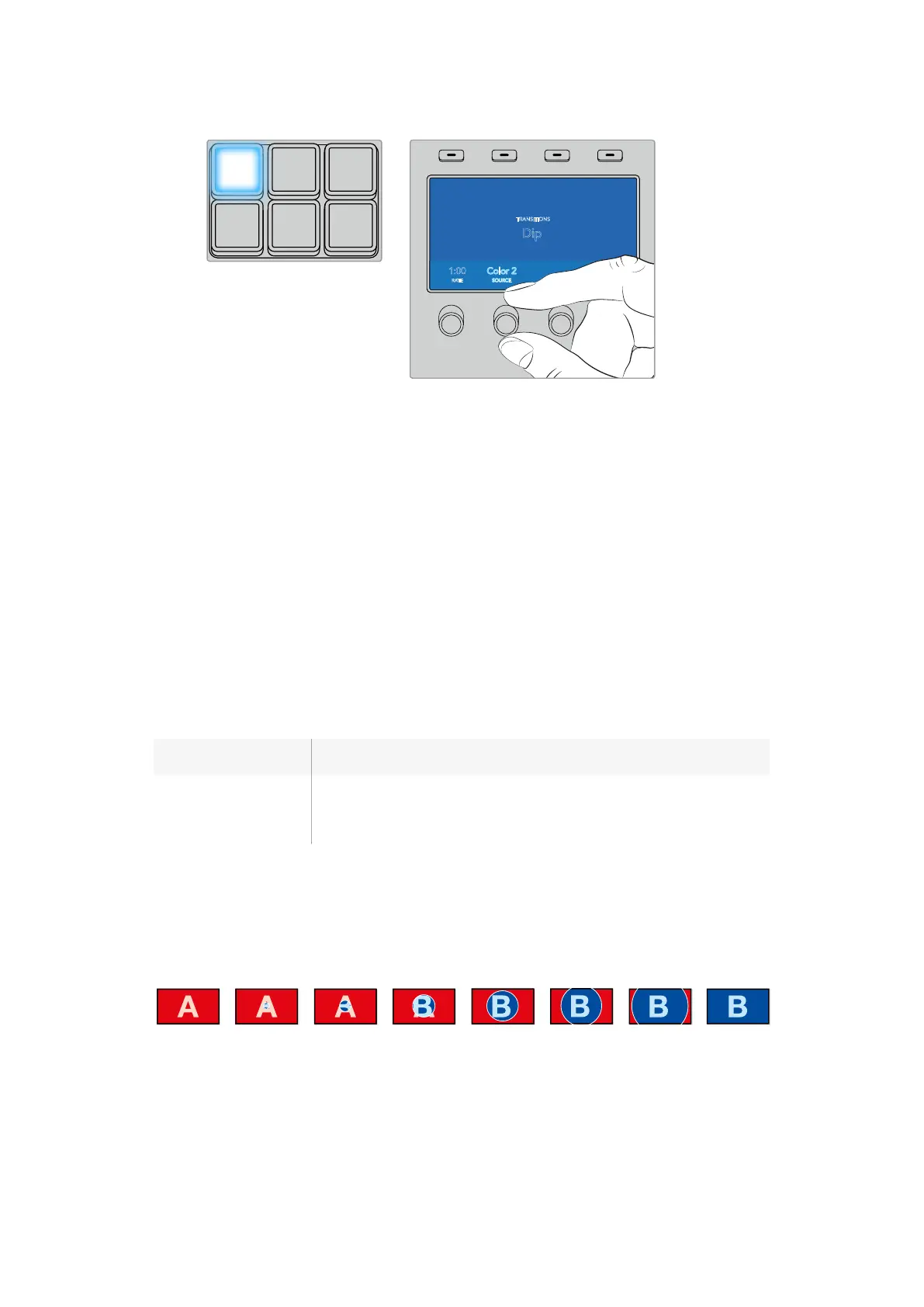 2 Press the SHIFT and DIP/MIX buttons to select the dip transition type. The DIP/MIX