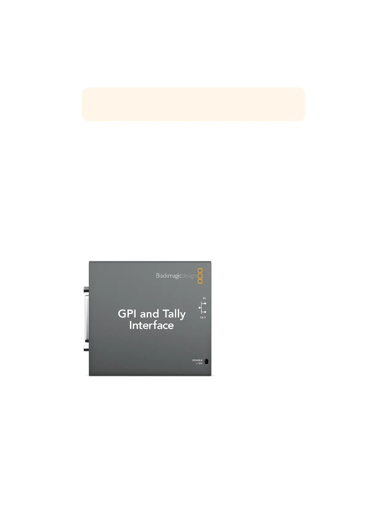 The GPI and Tally Interface by Blackmagic Design, is an Ethernet device which provides eight