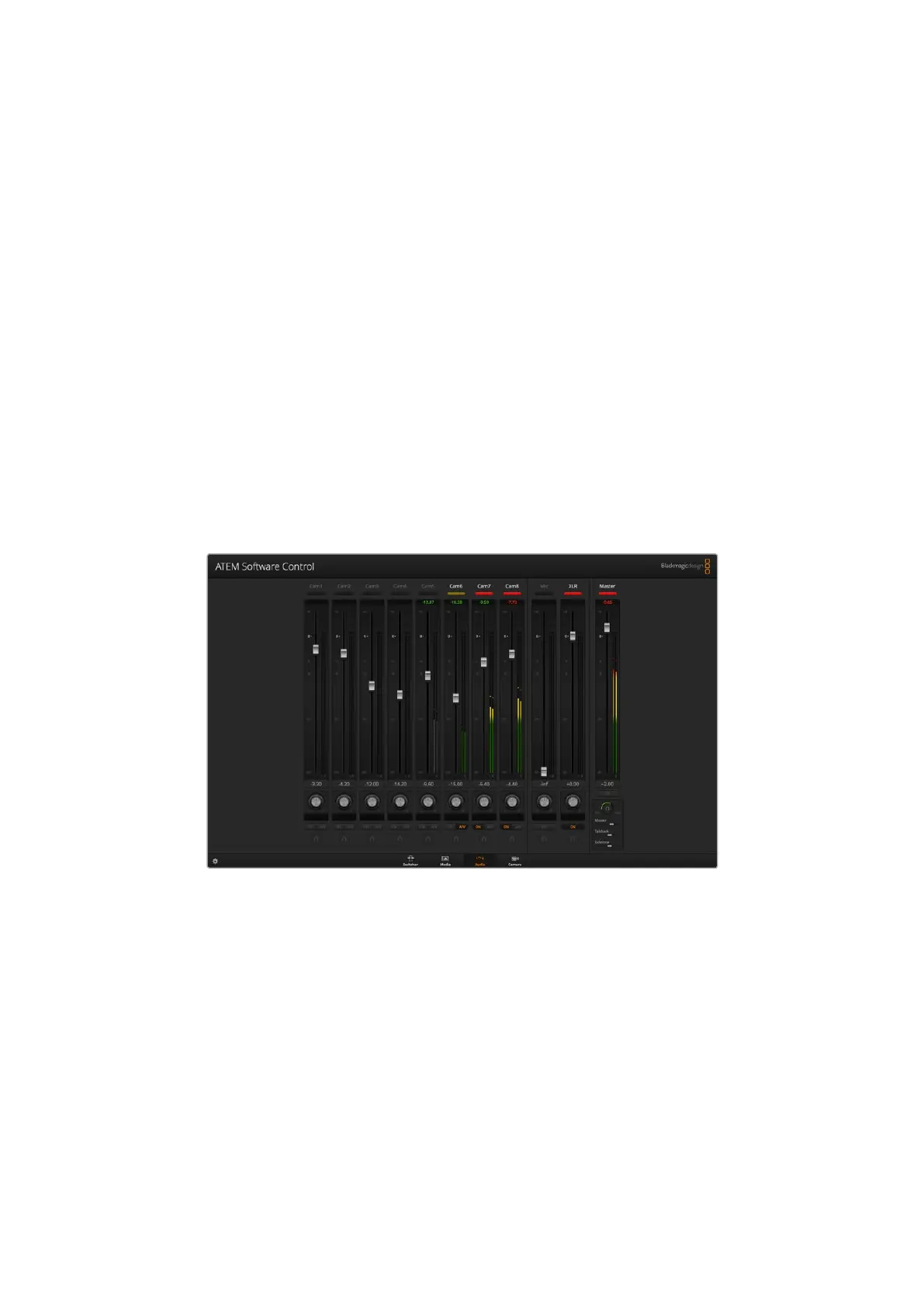 The audio tab in ATEM Software Control contains a powerful audio mixer interface which