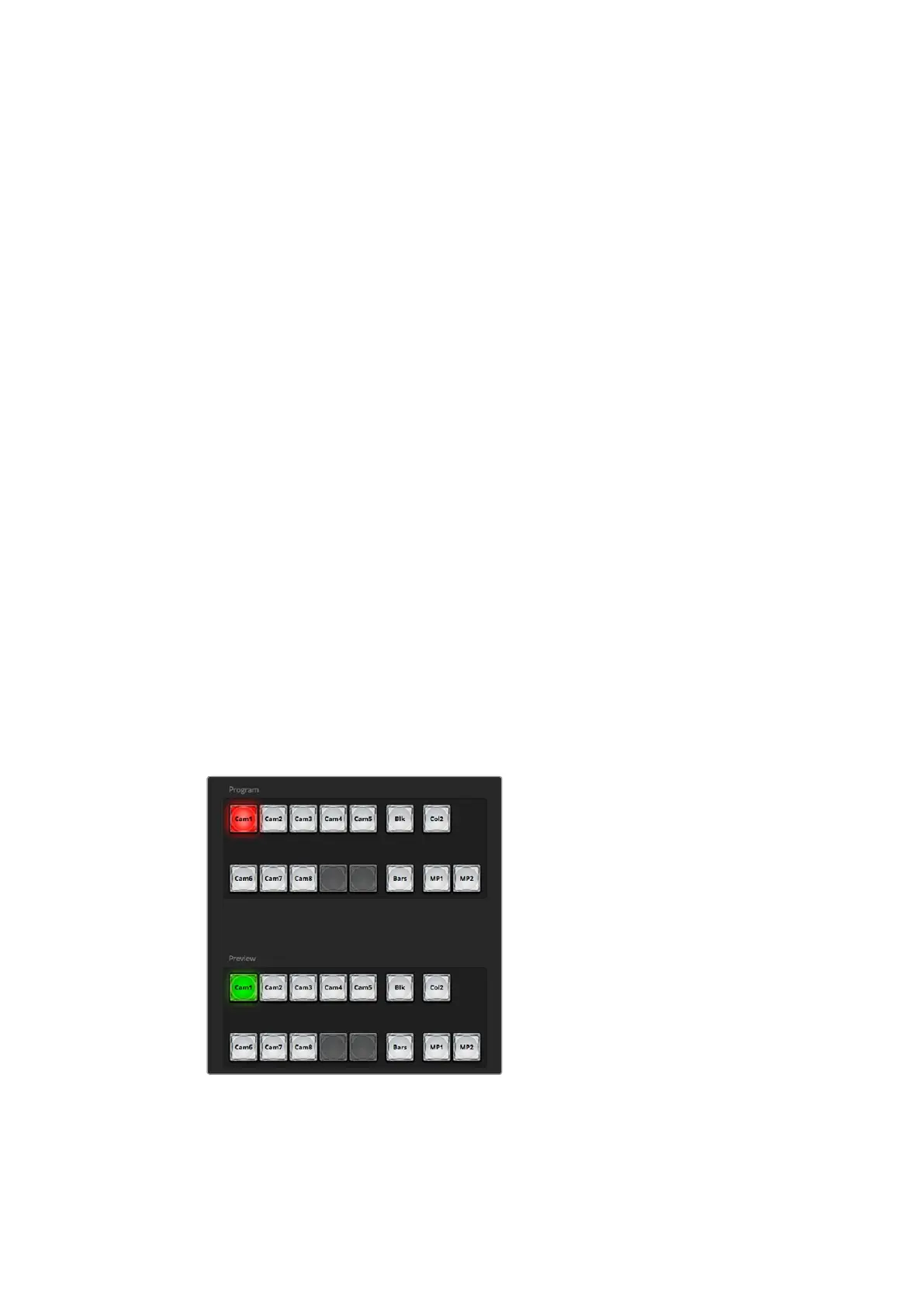 program output. The source currently on air is indicated by a button that is illuminated red.