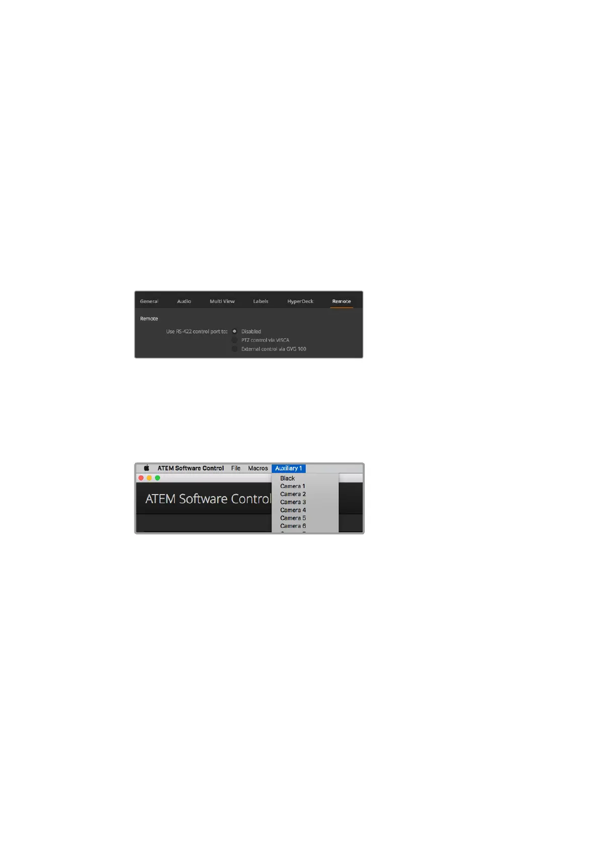 Use the 'remote' settings to tell your switcher how to use the RS-422 remote port. The options