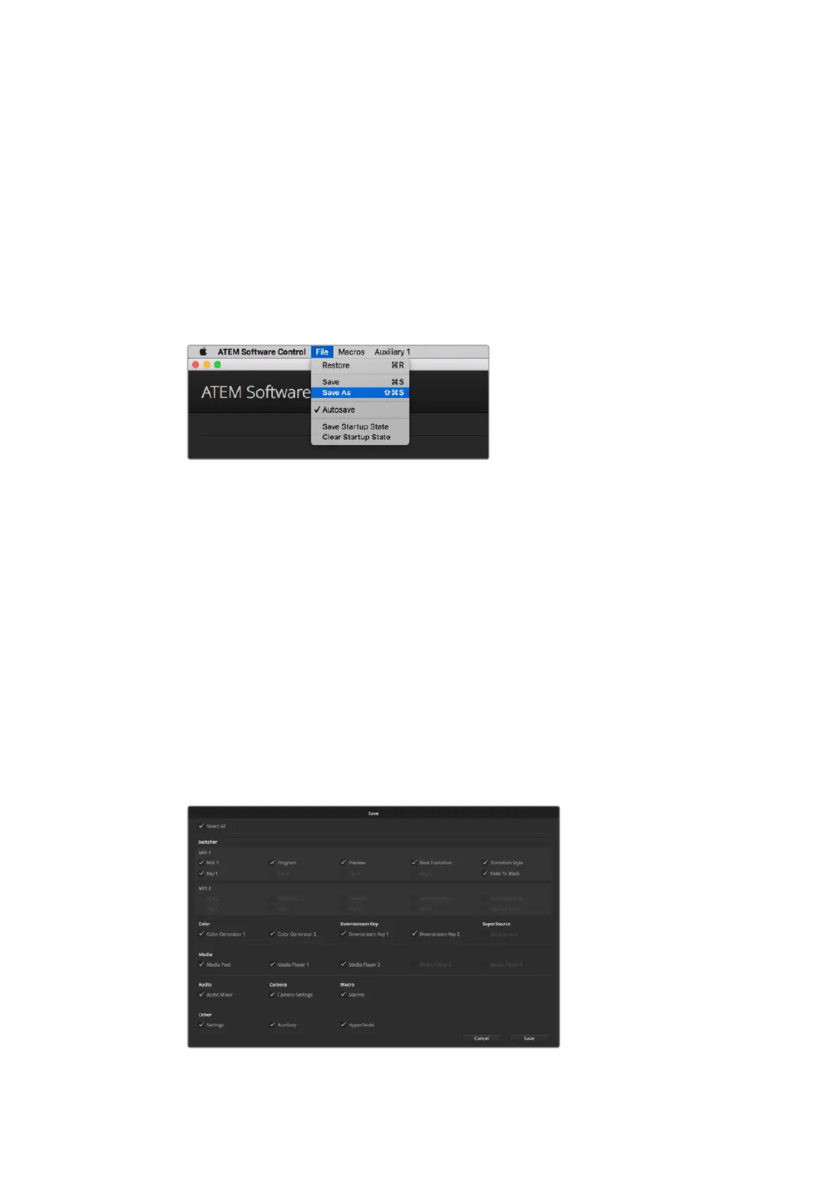 enabled by default. If you save with Select All enabled, ATEM Software Control saves