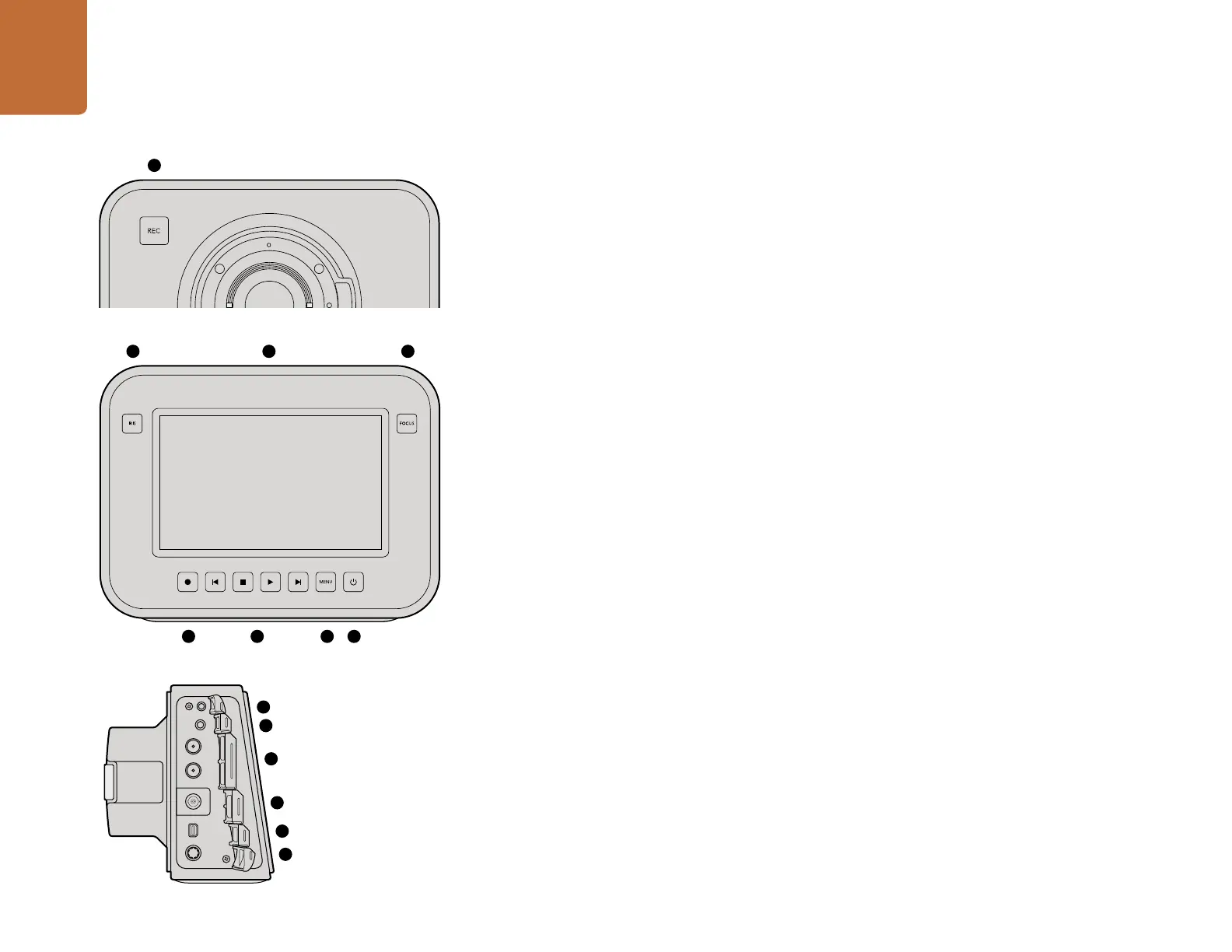Verfolgen Sie auf der LCD-Anzeige die Aufzeichnung oder Wiedergabe eines Clips, oder nutzen Sie sie zur Ansicht des Menüs.