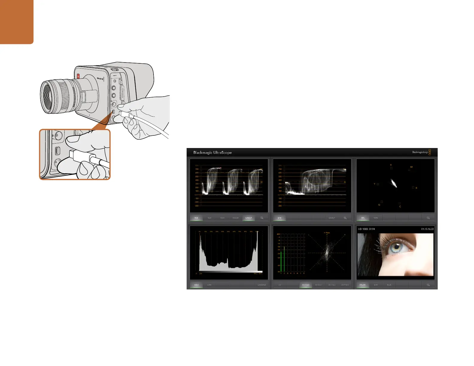 de onda de la cámara durante la grabación y la reproducción. Blackmagic UltraScope permite controlar casi