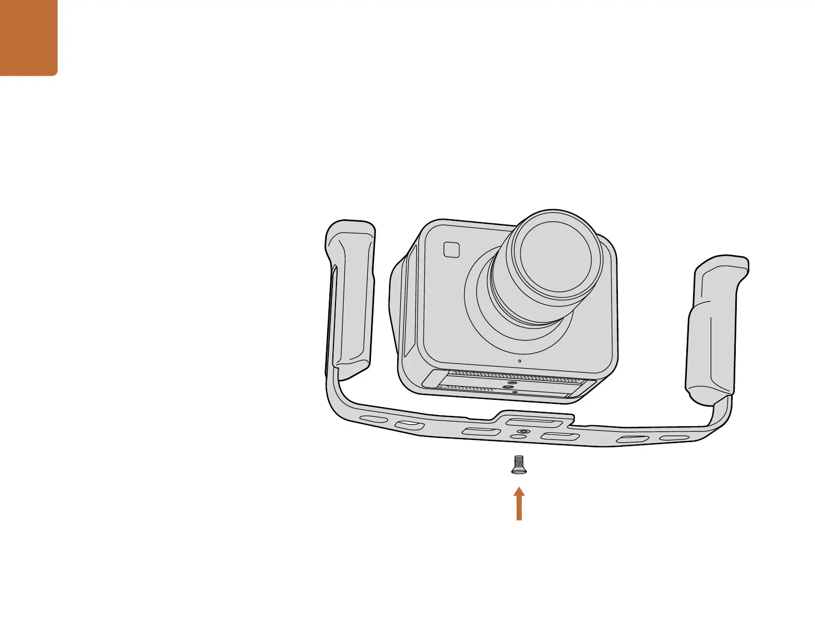 Localice la rosca de ¼ en la parte inferior de la cámara e inserte tornillo para colocar las manijas en la cámara.