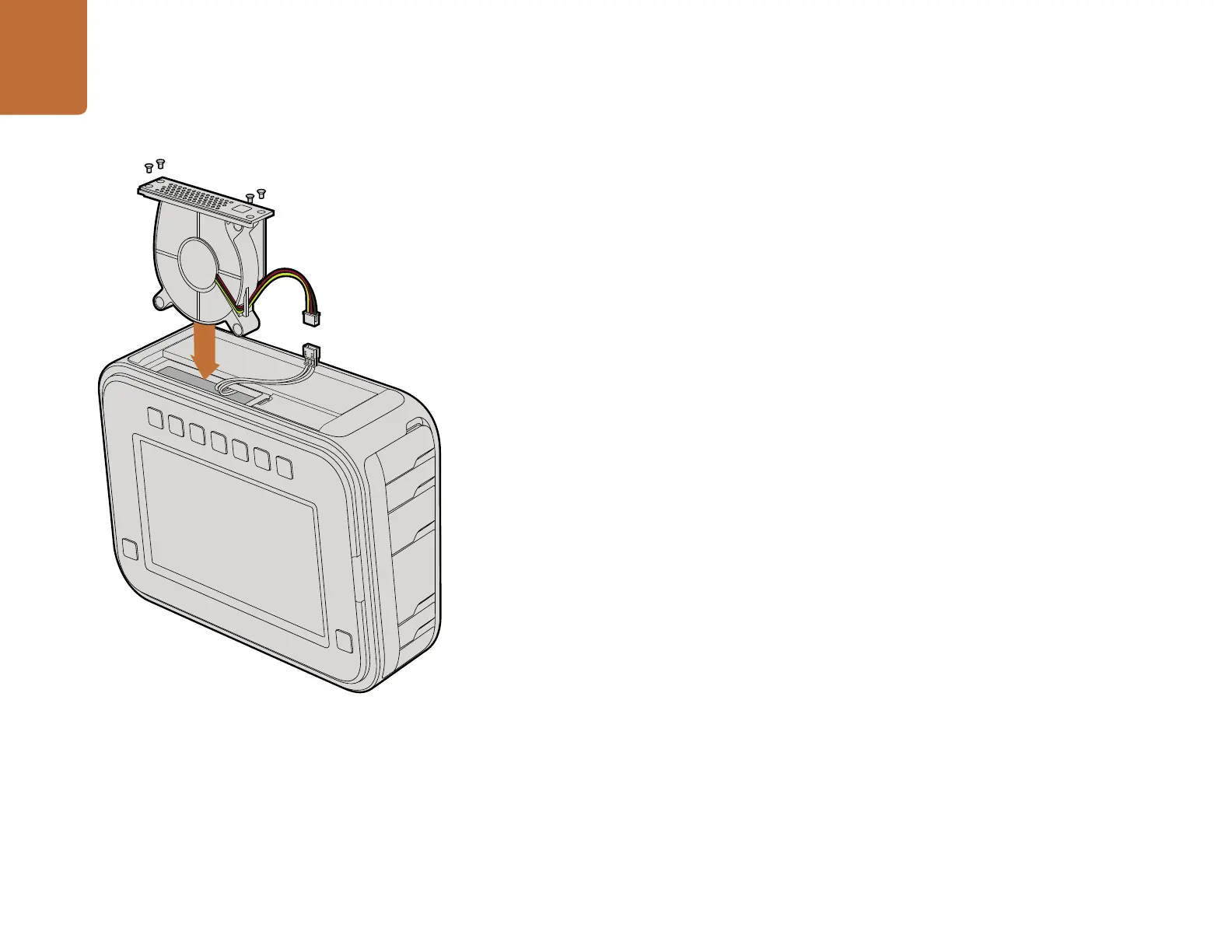 第三步: 将风扇模块从摄影机身中轻轻取出,切勿拉扯连接到机身内部的电线。若不慎拉扯到这些电线可能