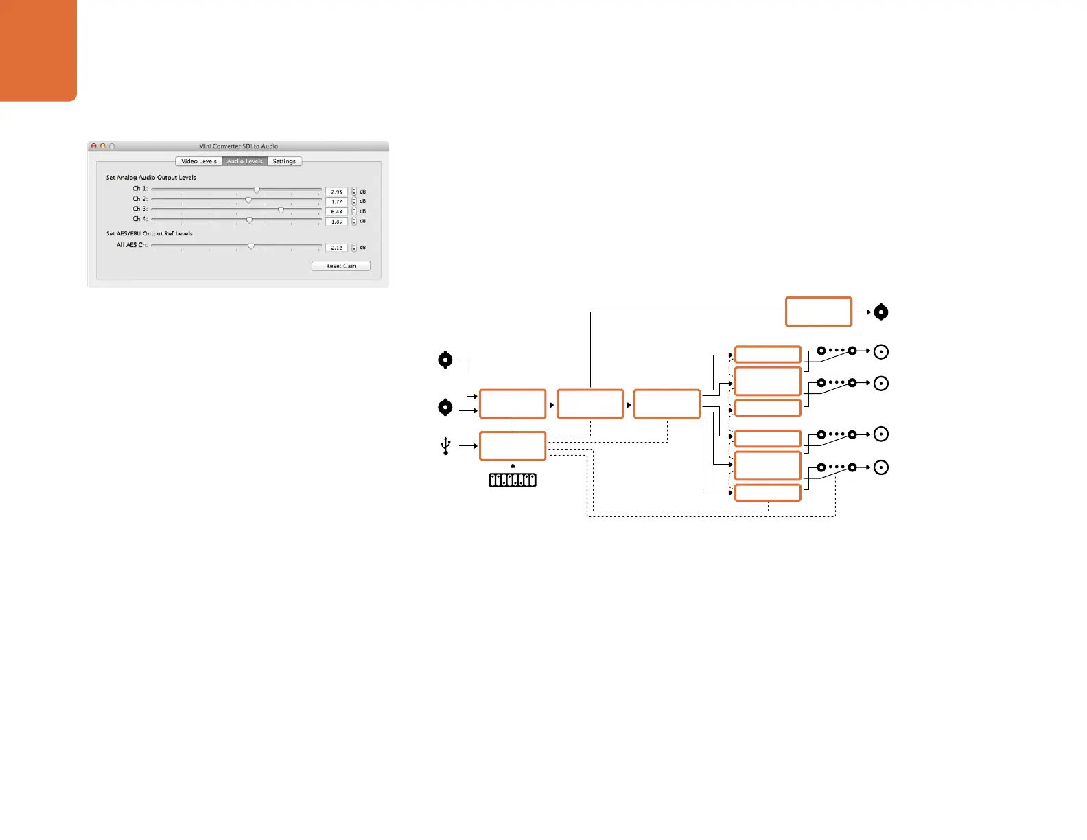 The Audio Levels pane lets you adjust audio levels for the selected analog channels or AES/EBU audio