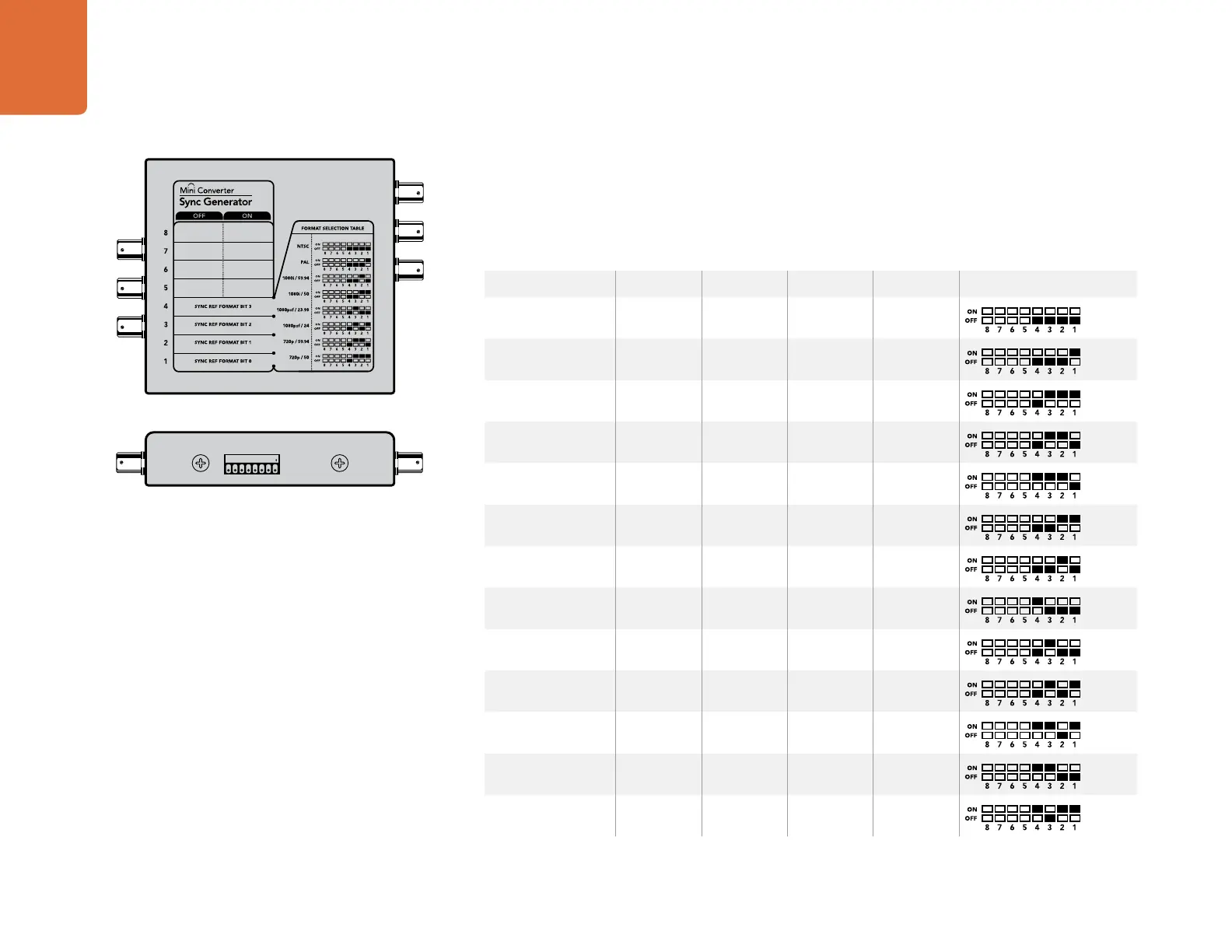 Mini Converter Sync Generator’s mini switches provide the following settings: