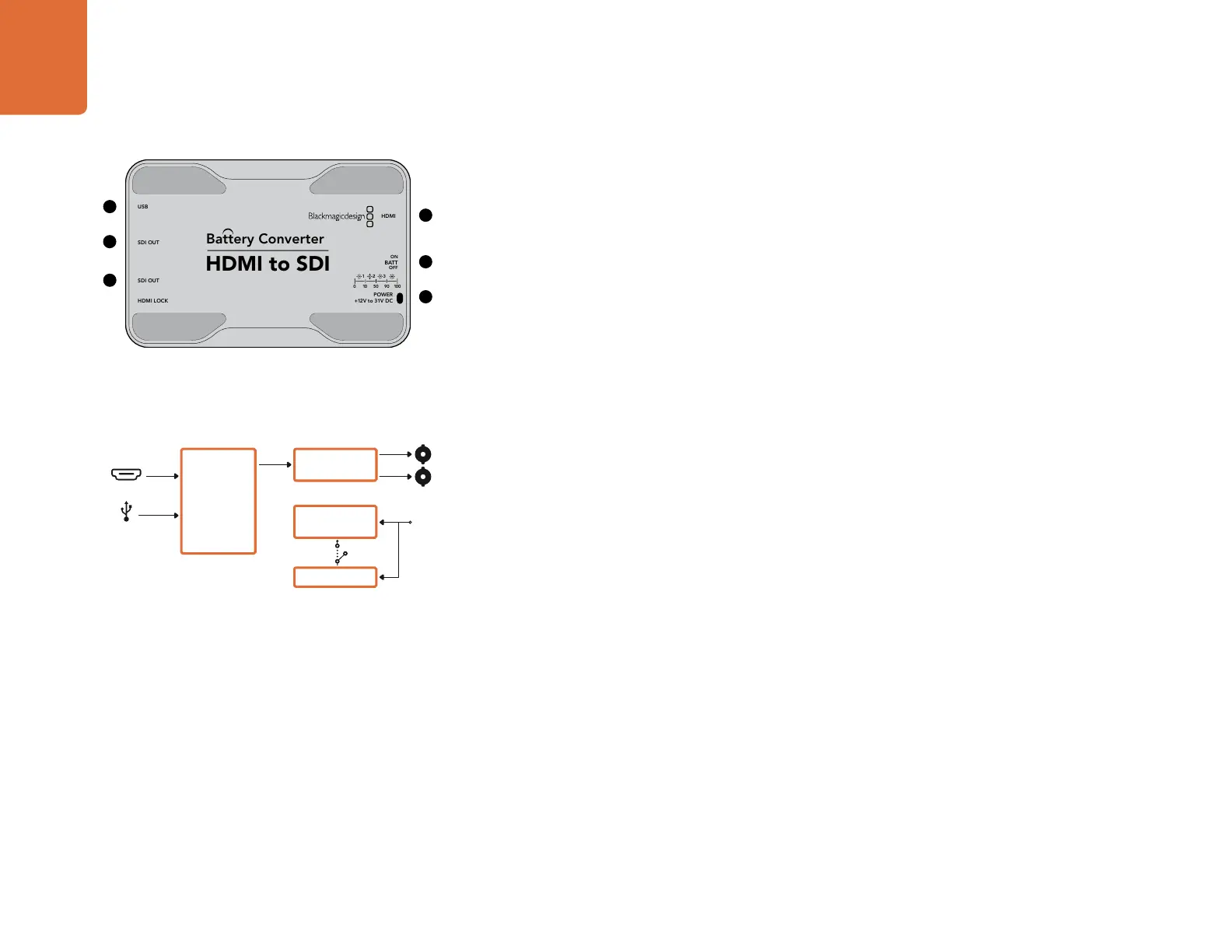computers with HDMI compatibility. Battery Converter HDMI to SDI includes a built in rechargeable battery.