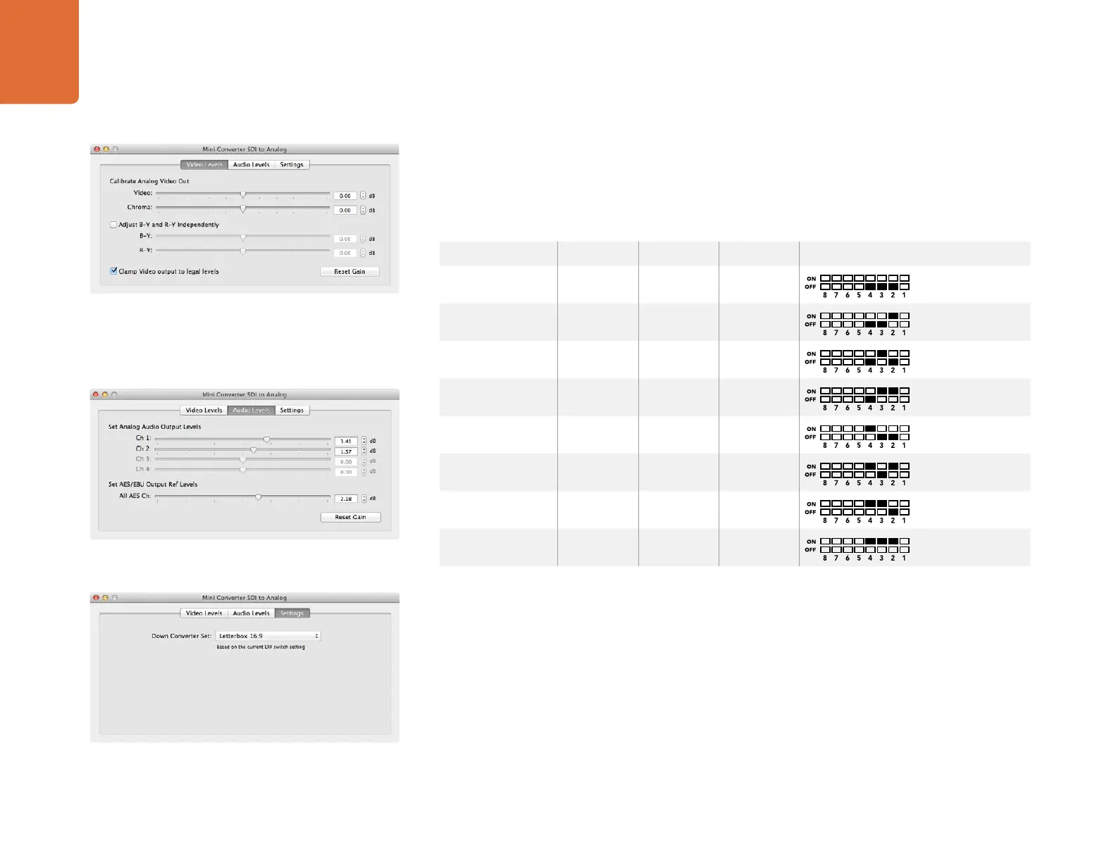The Converter Utility software complements your mini switch settings by providing supplementary