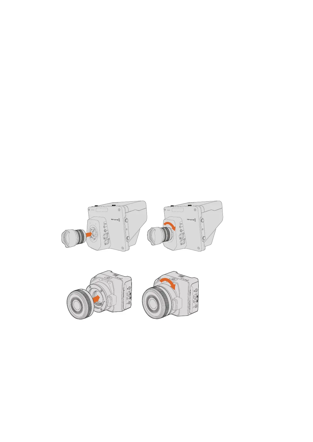 So wird ein Objektiv an die Micro Studio Camera 4K angebracht bzw. entfernt