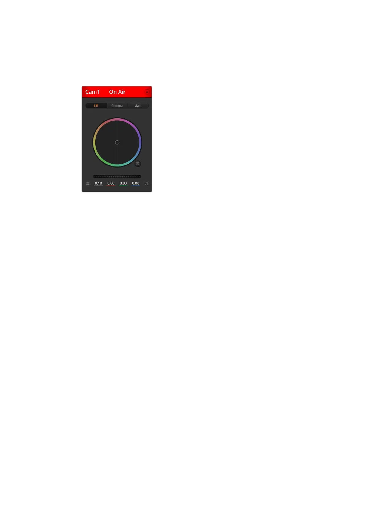 通道状态位于每个摄影机控制窗口的顶部,可显示摄影机标签、正在播出提示灯以及锁定按钮。