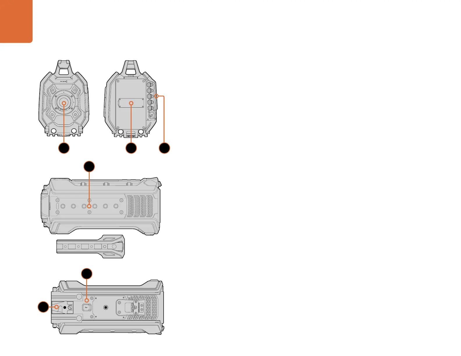 and 12V power input. Refer to the 'Blackmagic URSA connectors' section for more information.