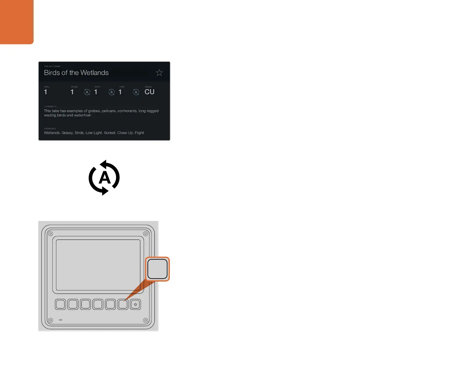 On Blackmagic URSA, press the 'slate' button to activate the