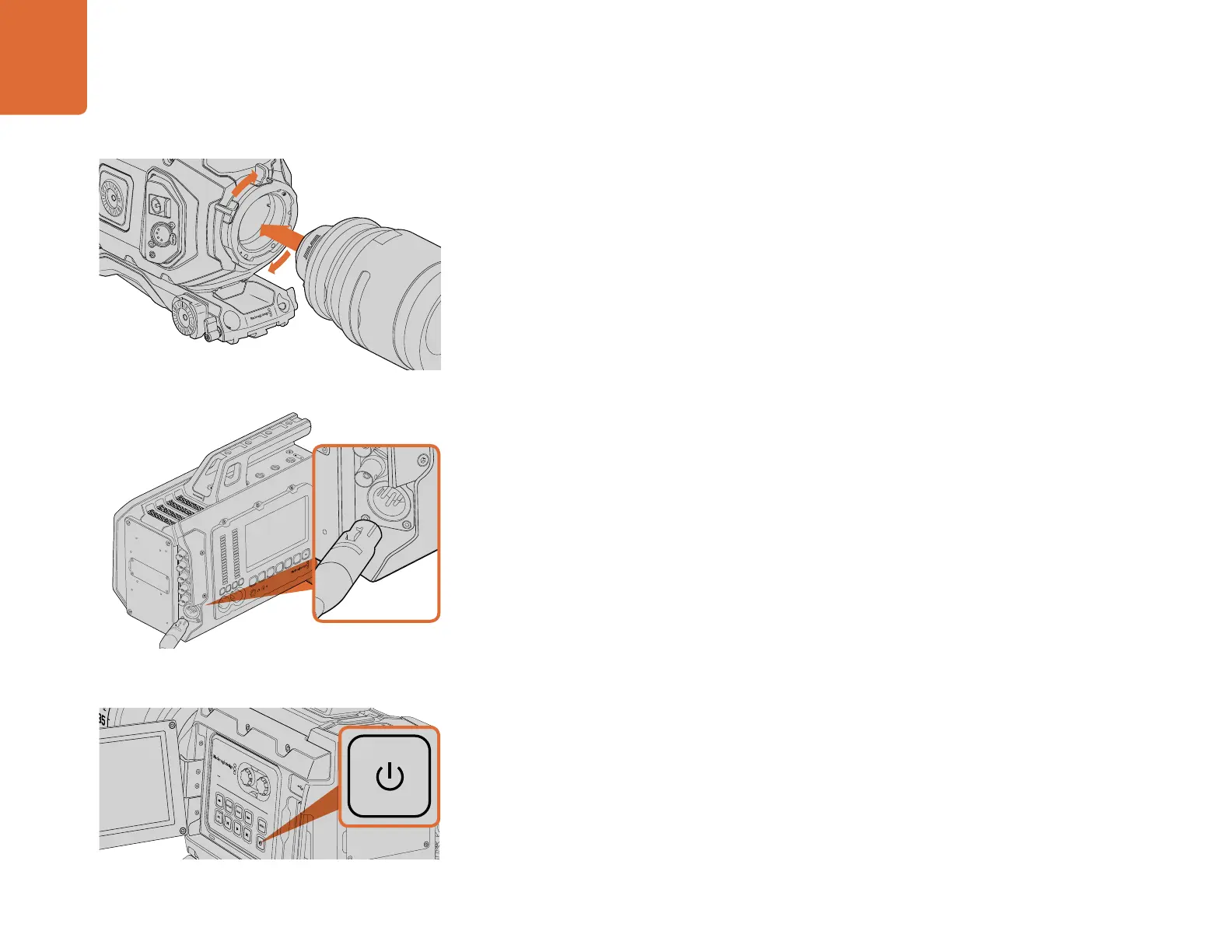 Now that you've attached a lens, you'll need to supply power. The quickest way to power your camera