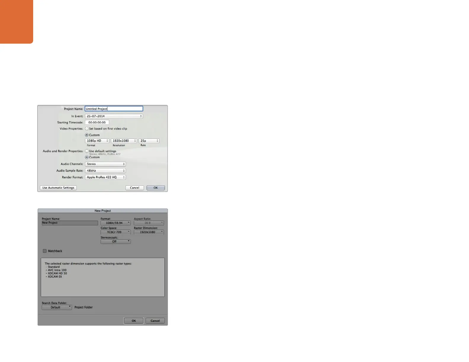 Final Cut Pro X project settings.