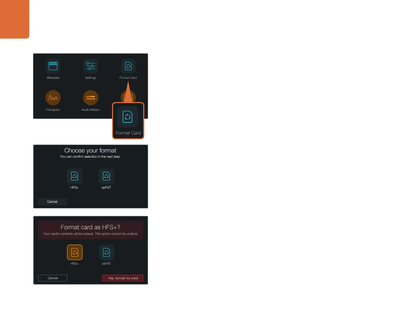 Step 4. Choose your format by tapping the HFS+ or exFAT icon.