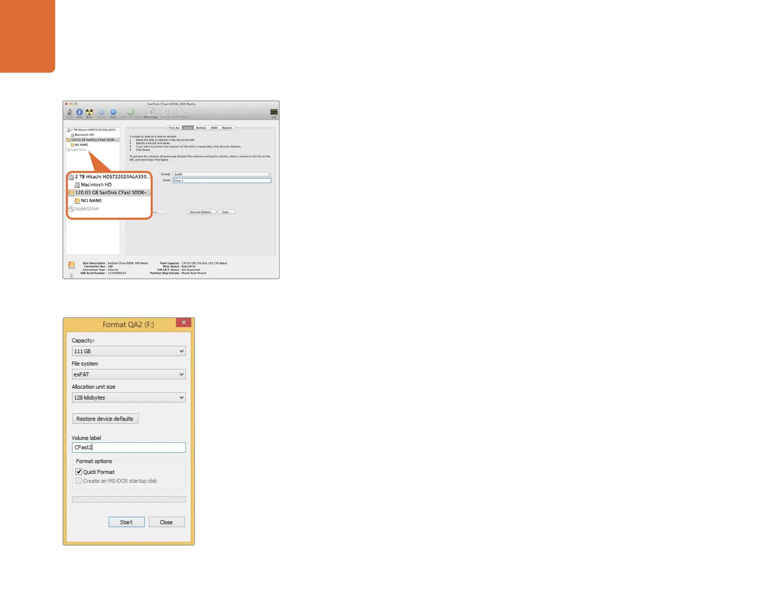 Use Disk Utility on Mac OS X to erase your CFast card in the