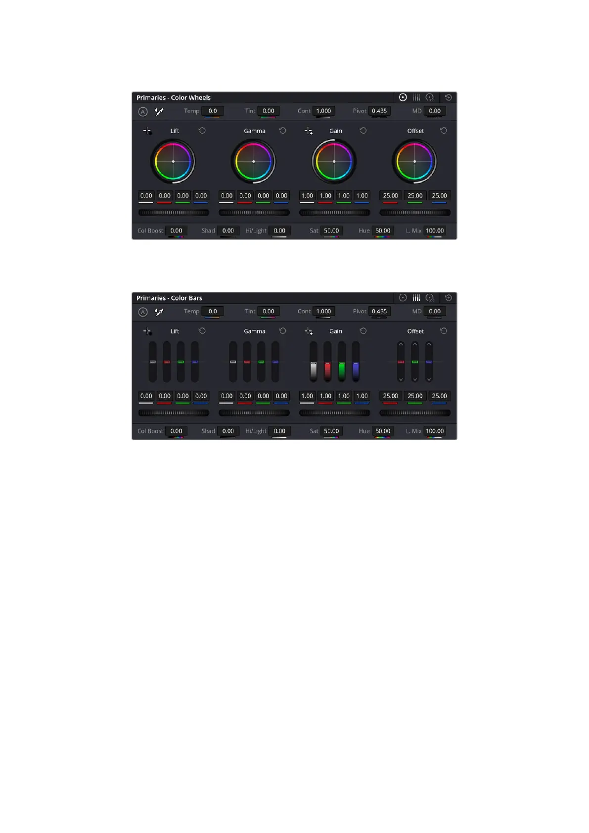 gain controls separately. Simply select ‘primaries bars’ from the dropdown menu near the top