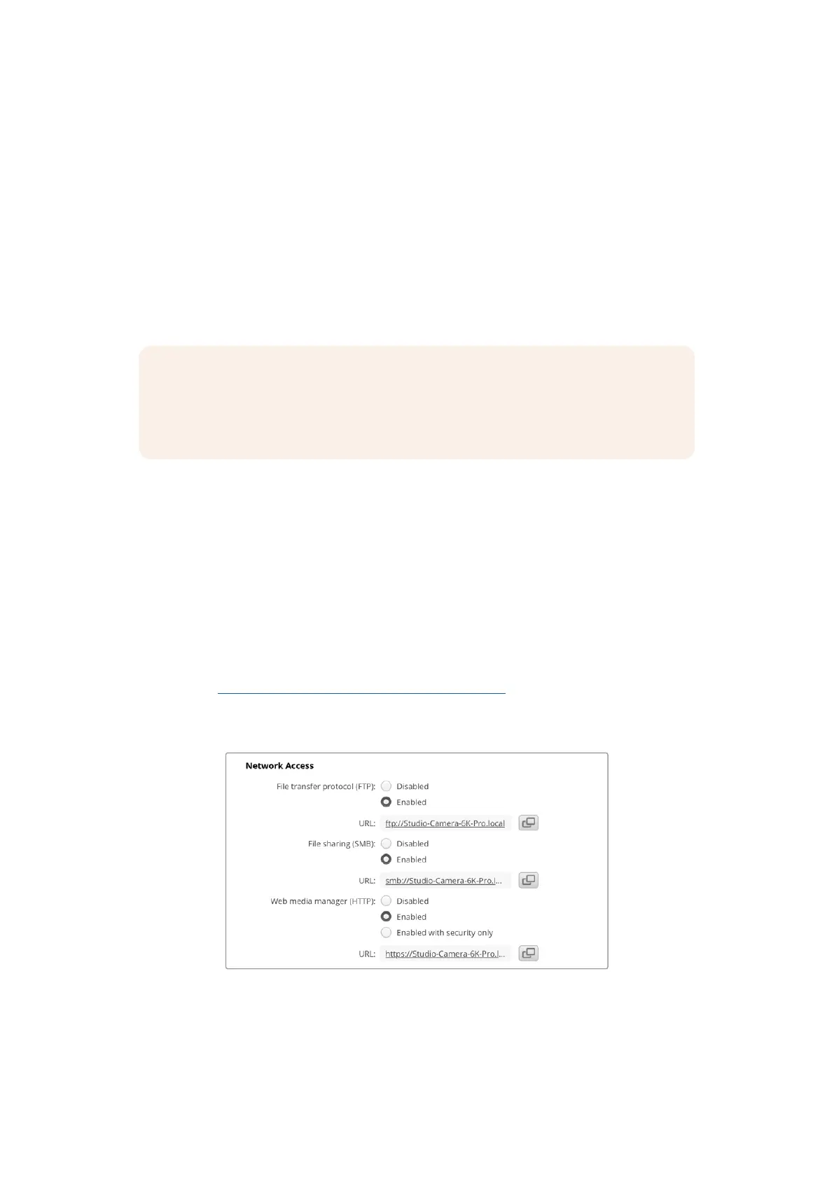 Enable the web media manager in the Blackmagic Camera Setup ‘network access’