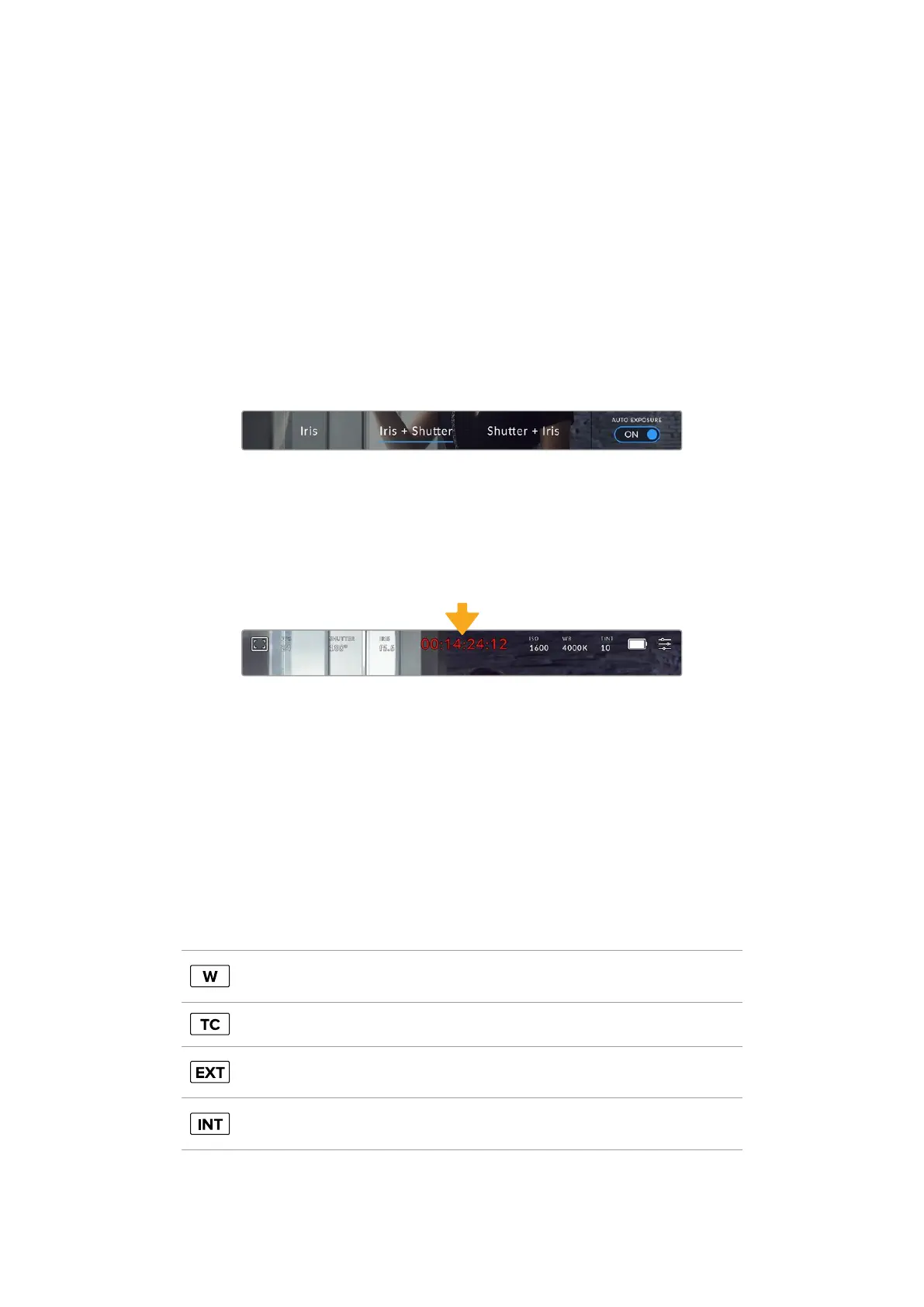 While in the iris menu, tap ‘auto exposure’ to access iris based auto exposure modes