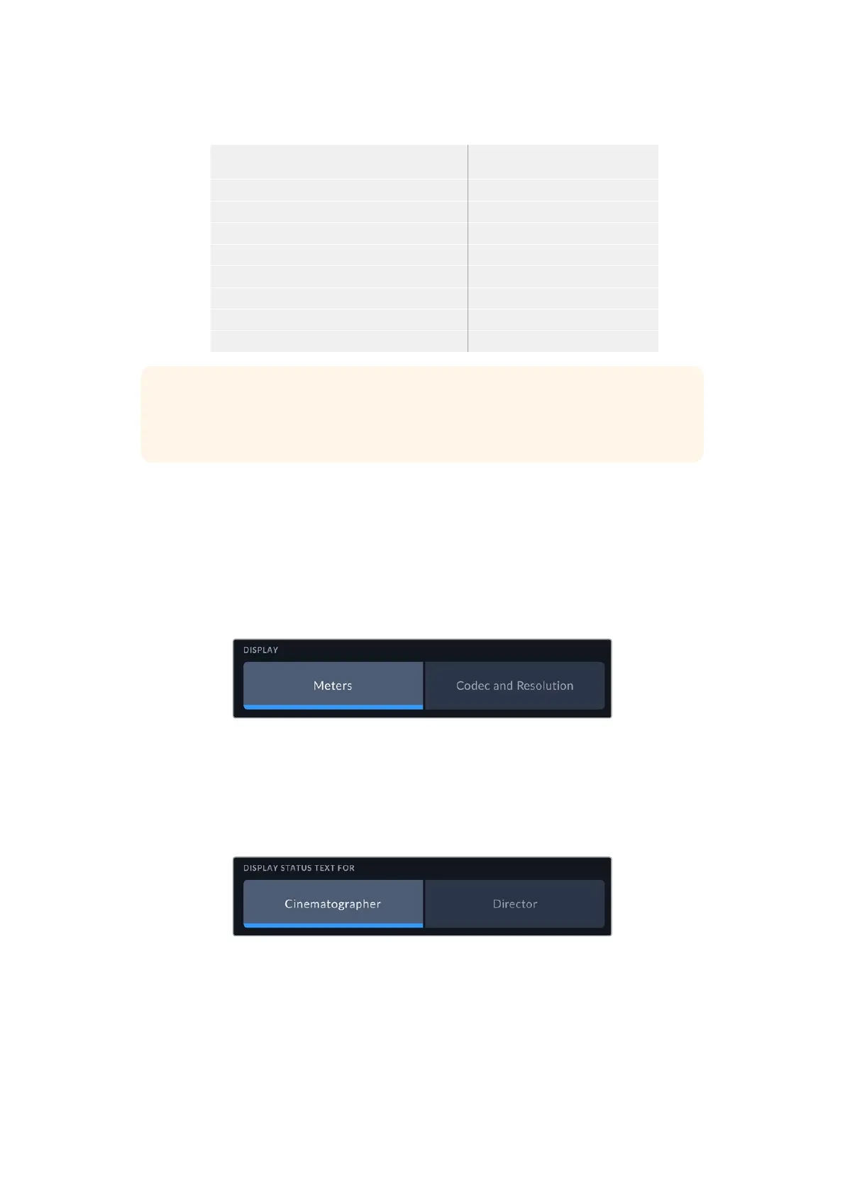 Setting the status text to ‘director’ in the HDMI monitor settings changes the status text for