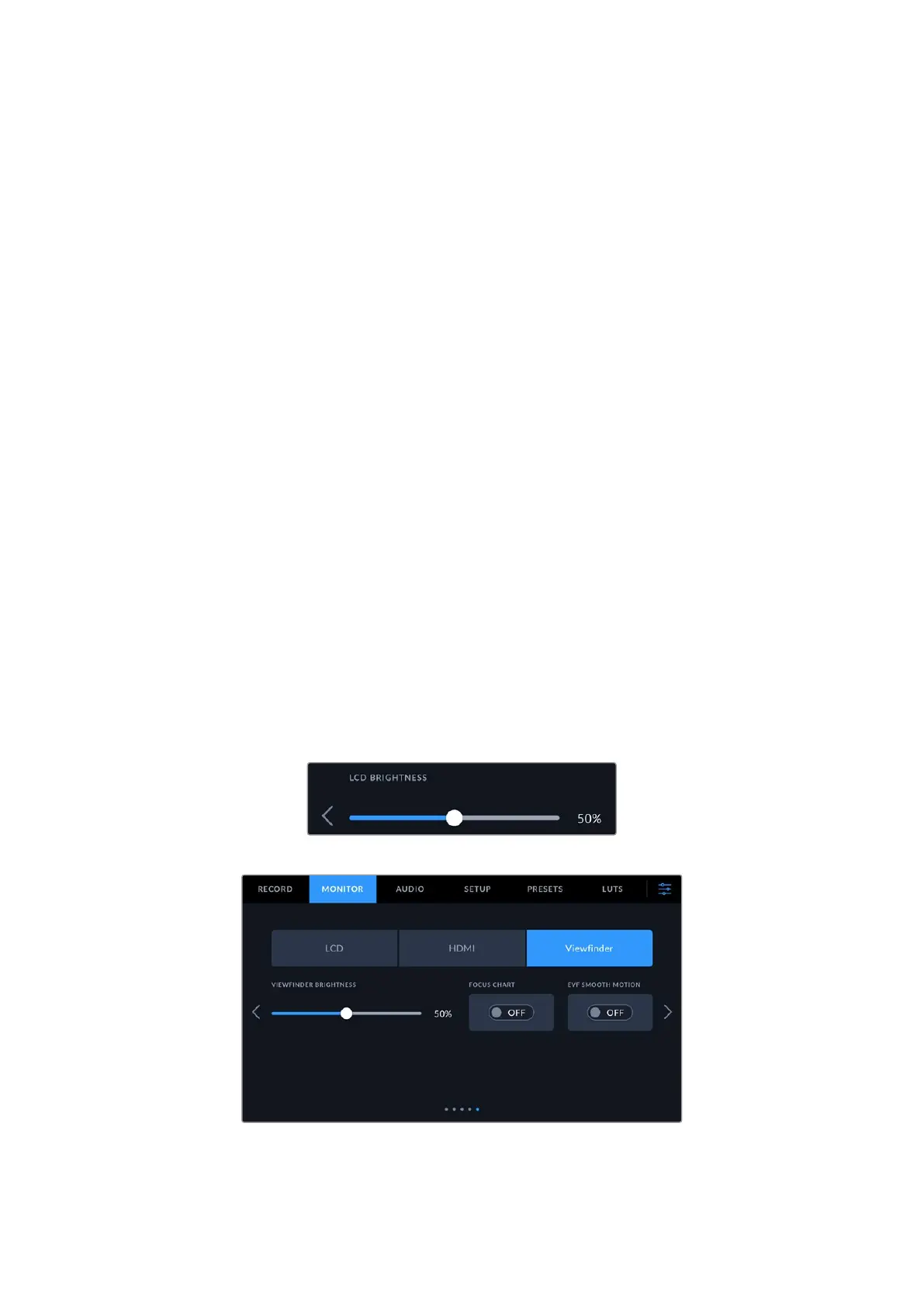The fifth page of your Cinema Camera 6K’s ‘LCD’ and ‘Viewfinder” monitor tab contains some