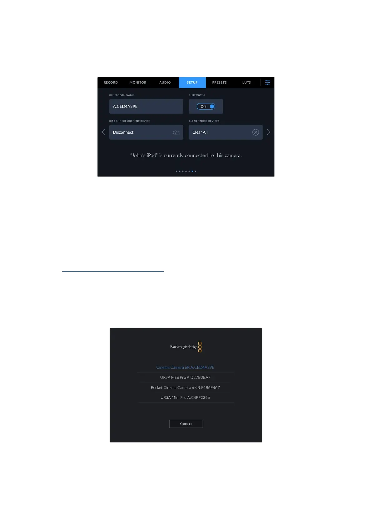 2 Open the ‘Blackmagic Camera Control App’ and select the camera you would like to pair it