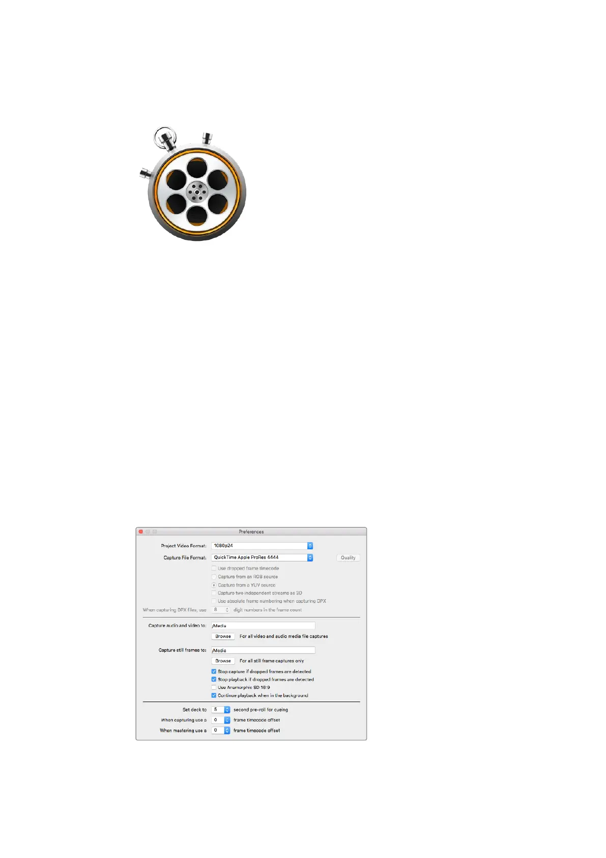 capture formats, or even a DPX image sequence from the ‘capture file format’ drop