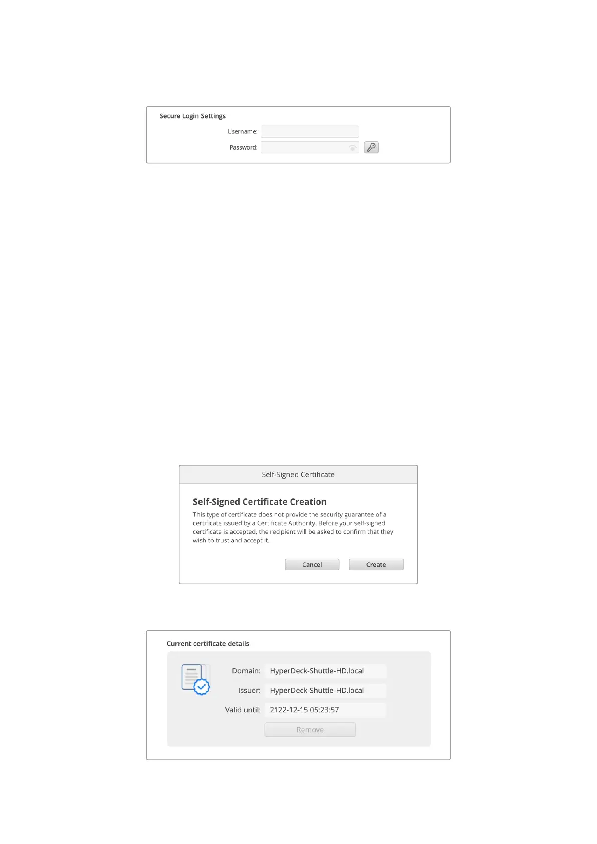 あ り ま す 。自 己 署 名 証 明 書 は 、ロ ー カ ル ネ ッ ト ワ ー ク の み を 介 し て HyperDeck Shuttle HDにアクセスす