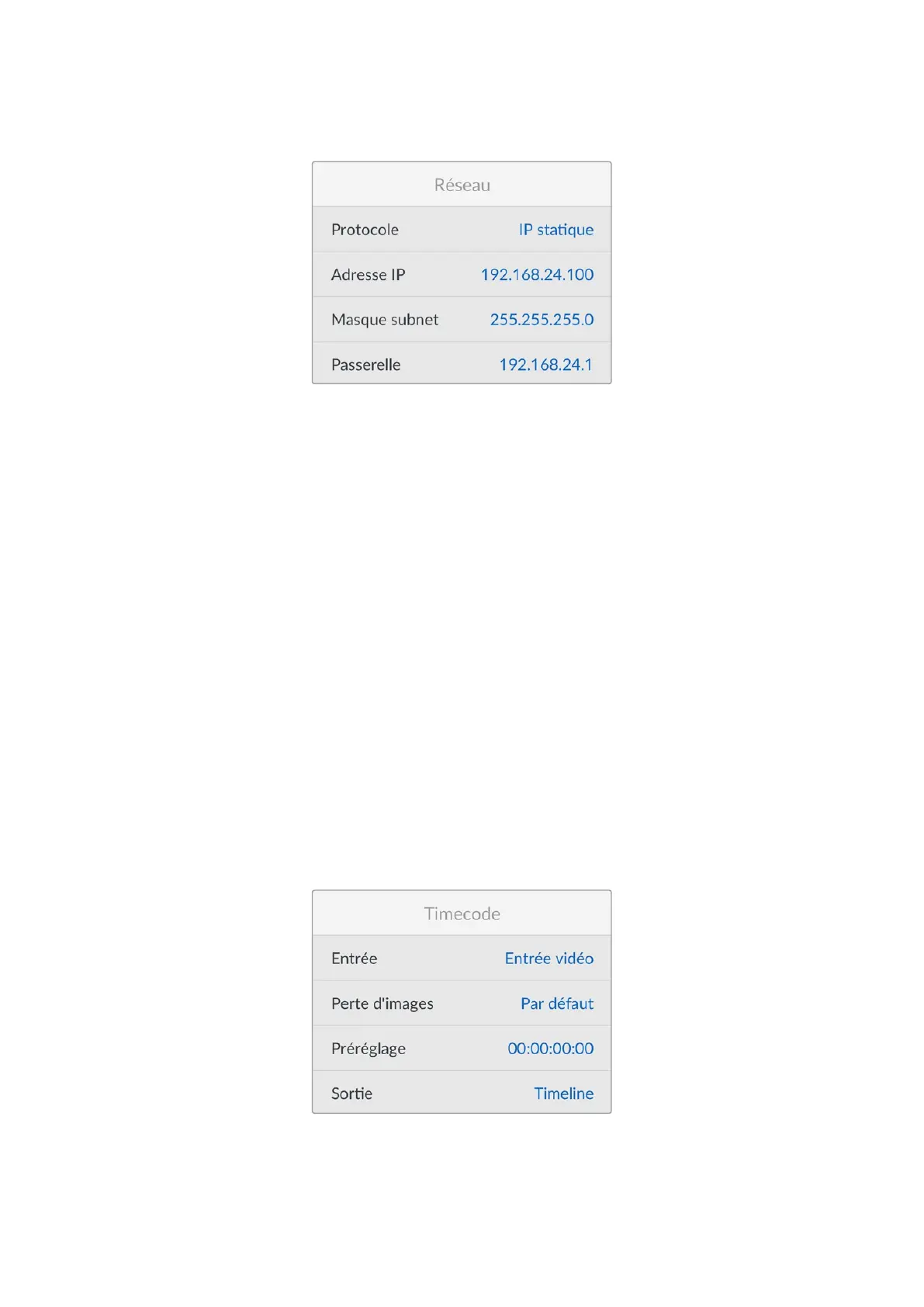 Paramètres du timecode