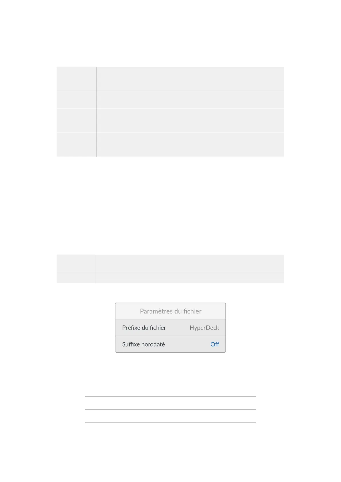 Vous pouvez modifier le préfixe du fichier via l’utilitaire HyperDeck Setup. Pour plus d'informations,