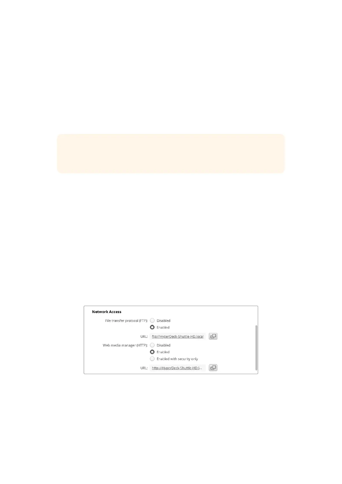 the HyperDeck Setup utility. For example, you could disable FTP access and enable HTTPS
